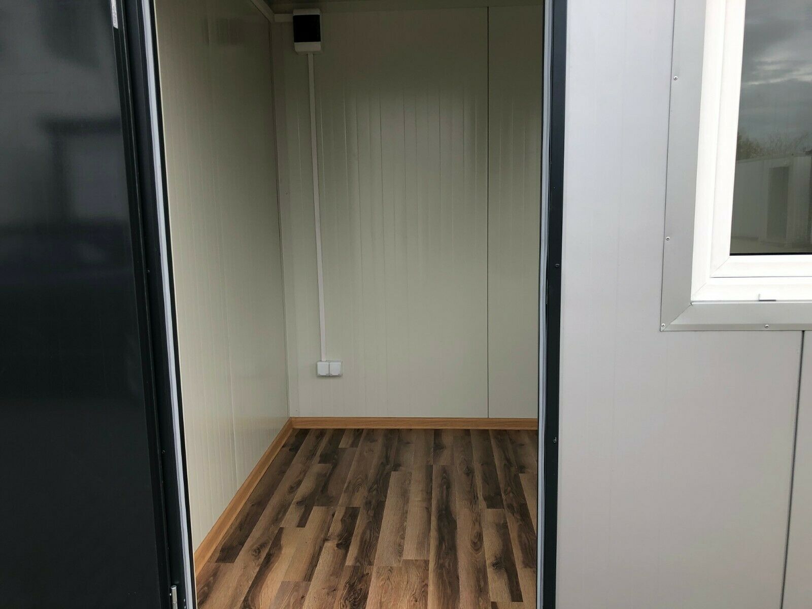 WC- Bürocontainer 4,00 x 2,40 Meter, 2,70 Meter hoch. -Wände u. Dach Sandwichelemente 7,5cm Isolierung. - 2 Fenster Dreh Kipp (Doppelverglasung) - Wärmegedämmtes Sandwichprofil für geringen Energieverlust - Hörmann Stahlblech Außentür - Komplette Elektroinstallation nach EG Richtlinien - Steckdosen