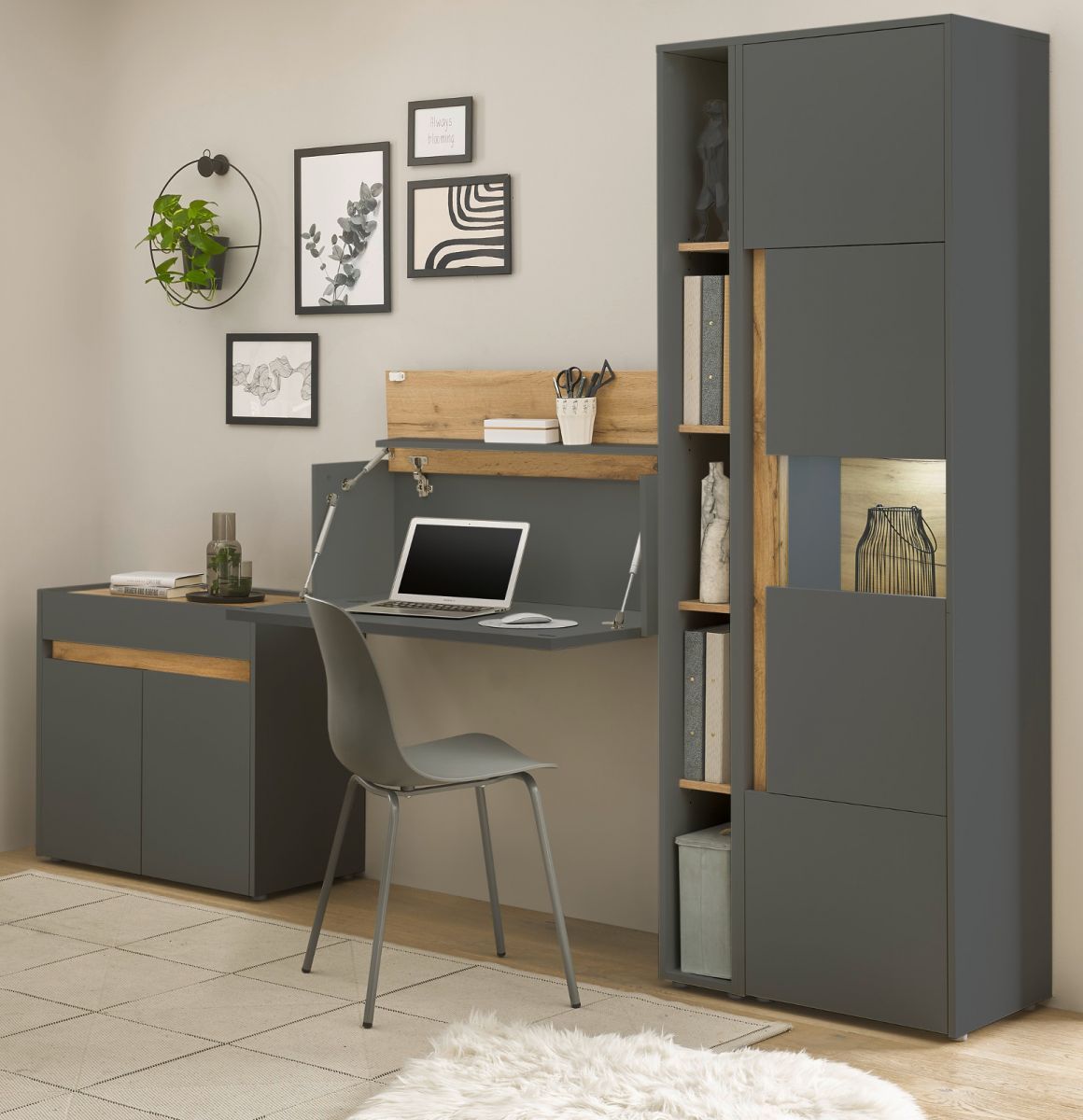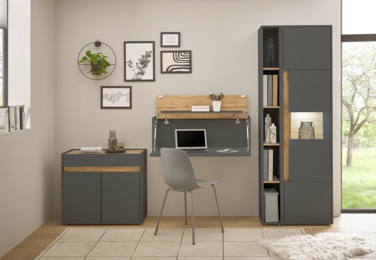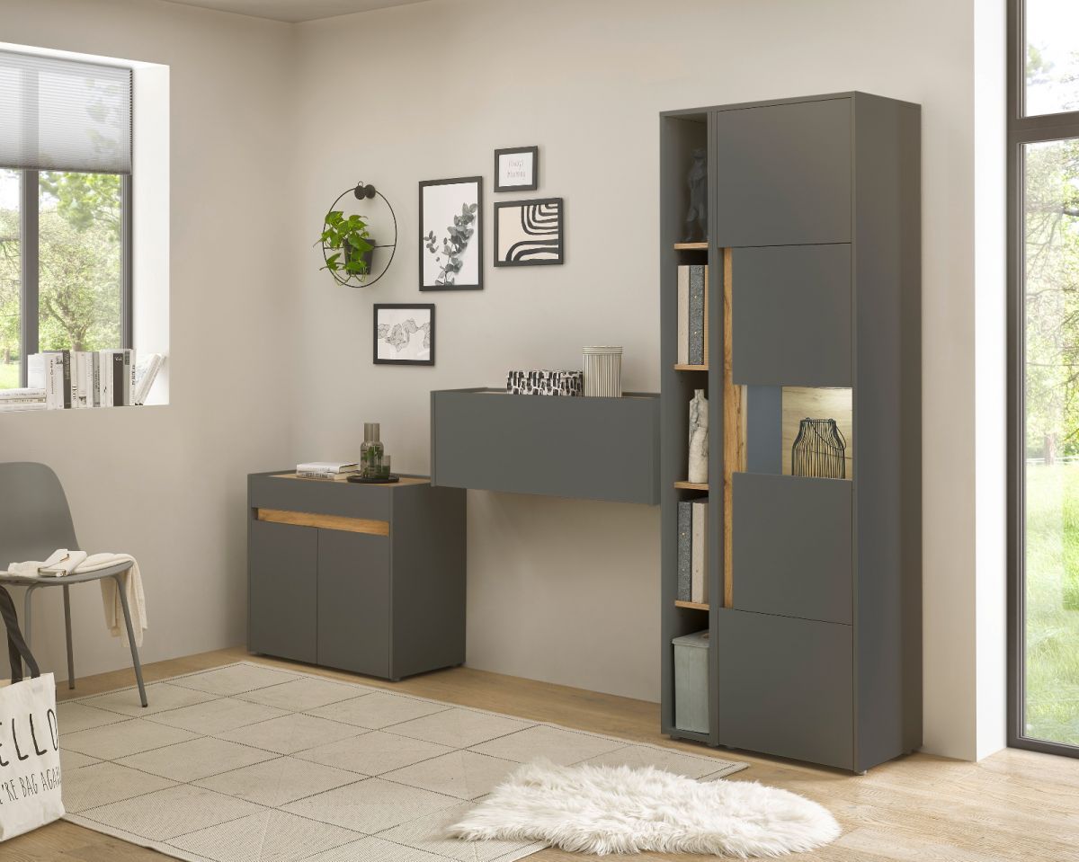 Büromöbel grau und Eiche komplett Set mit Aktenschrank Sekretär Kommode Büro Center