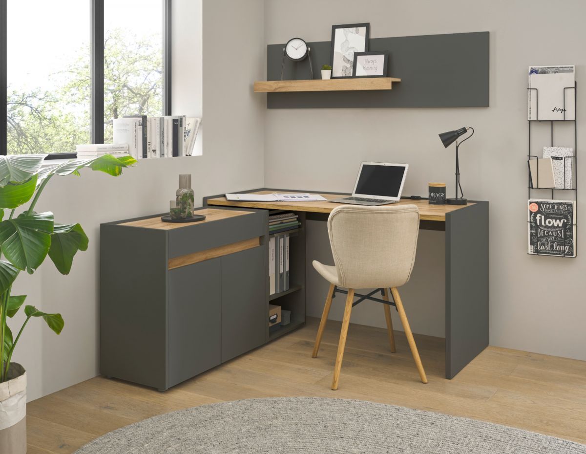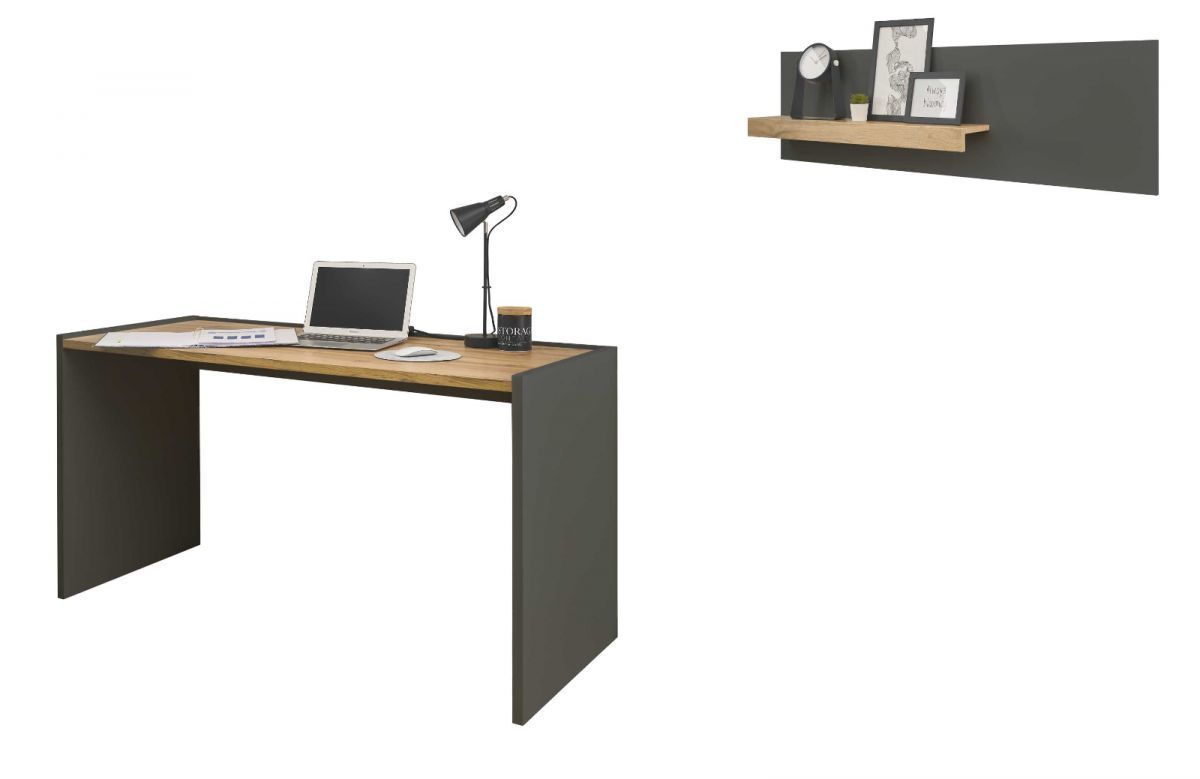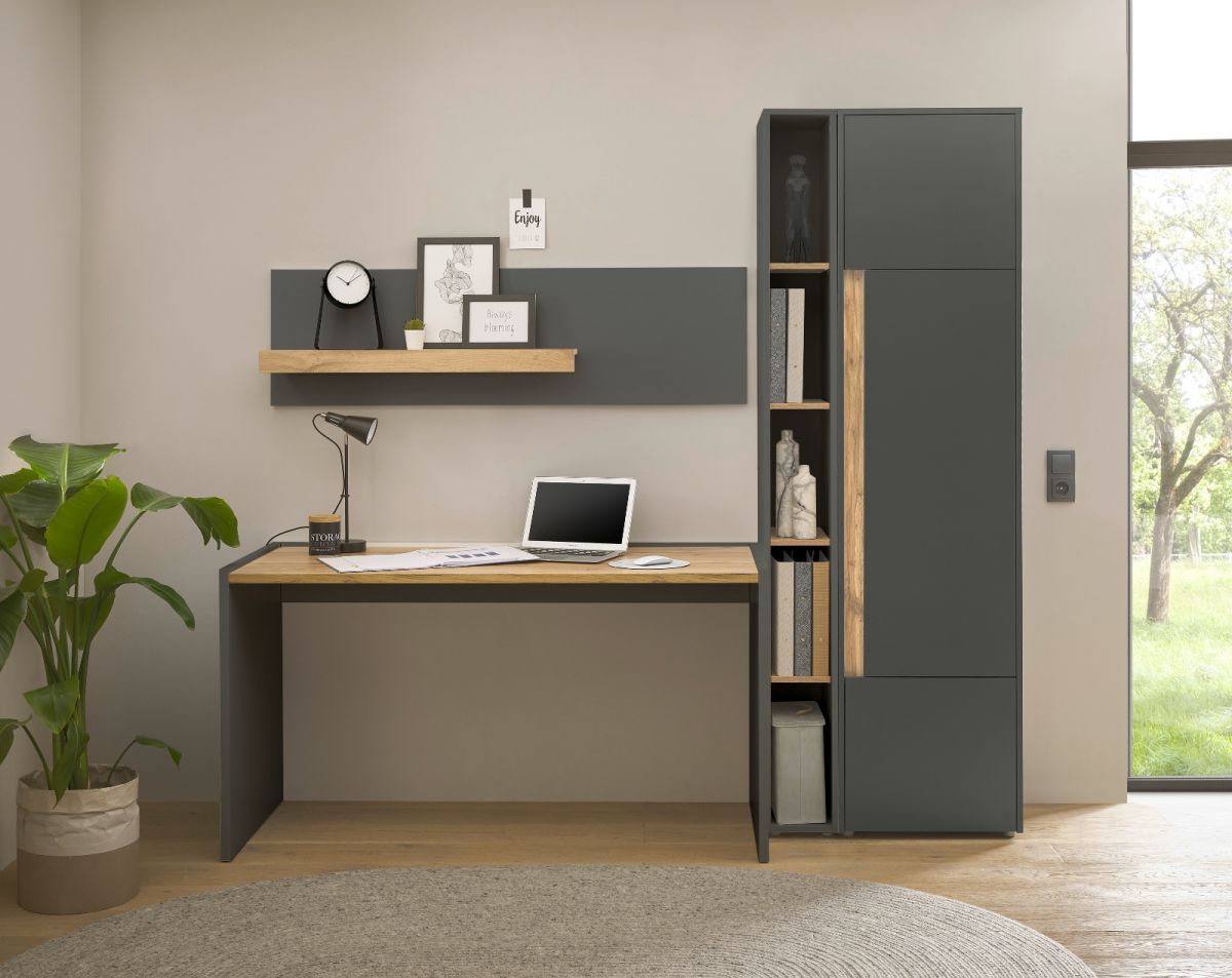 Büromöbel Set mit Schreibtisch und Wandregal Homeoffice in grau und Eiche Büro Center