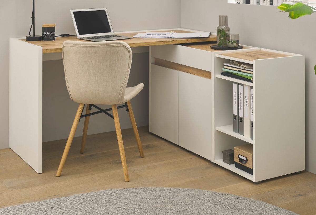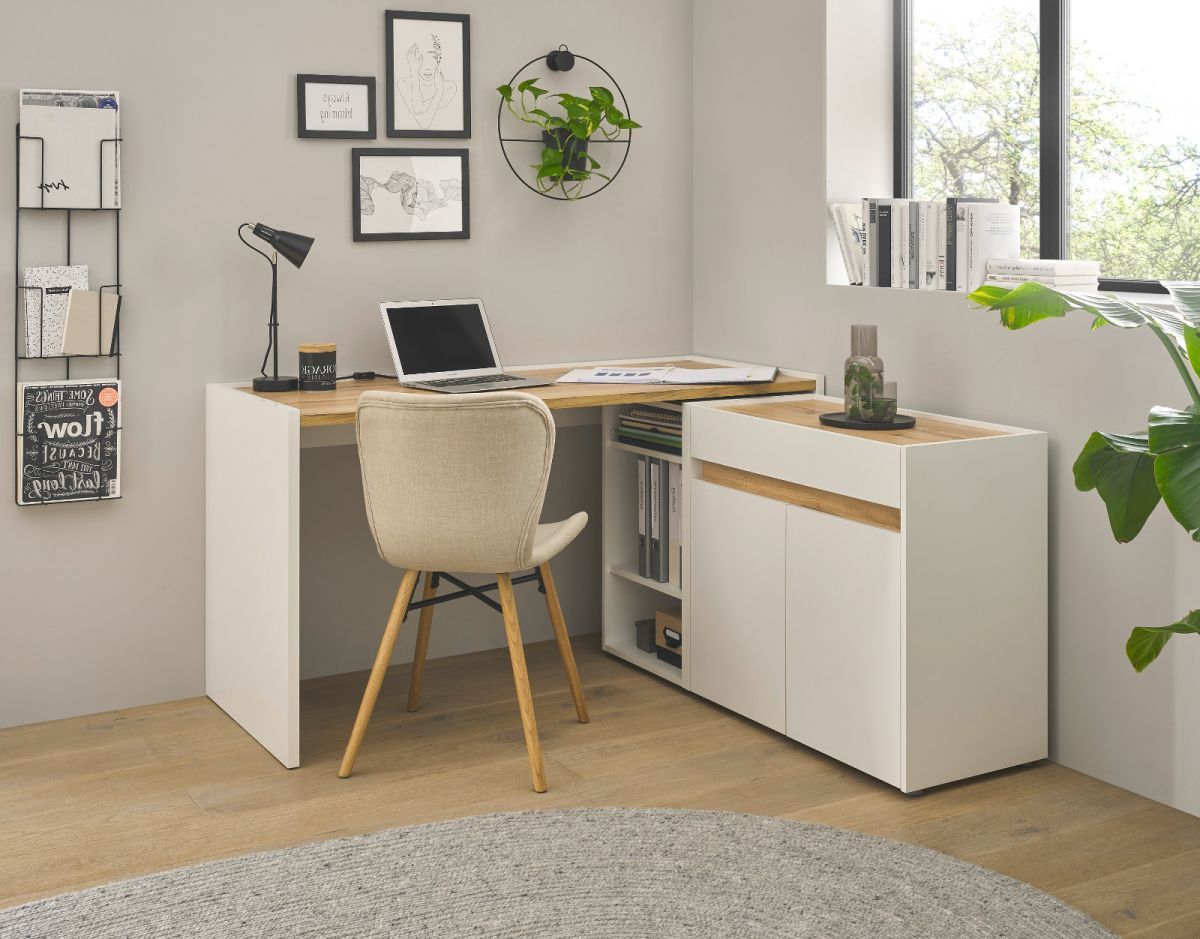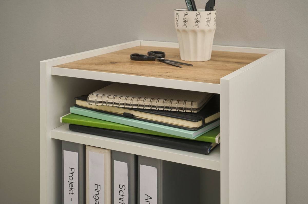 Büromöbel-Set weiß und Eiche Homeoffice Schreibtisch Kommode Aktenregal Büro Center