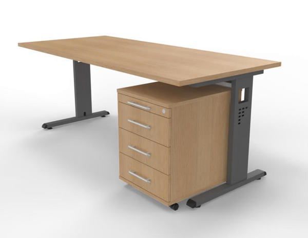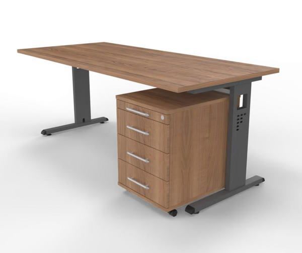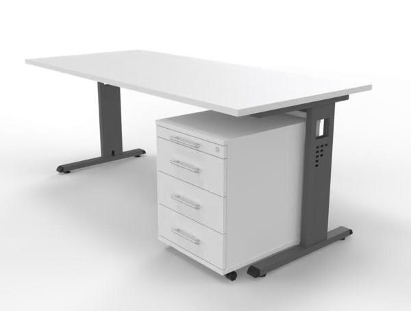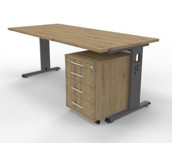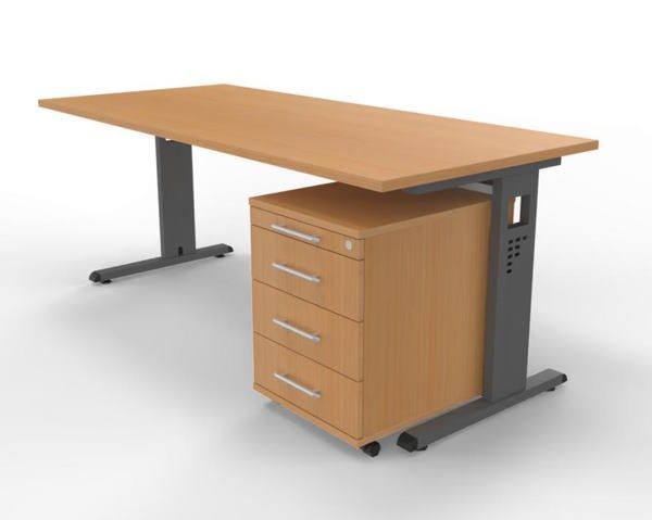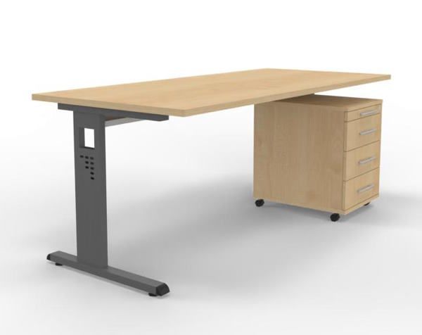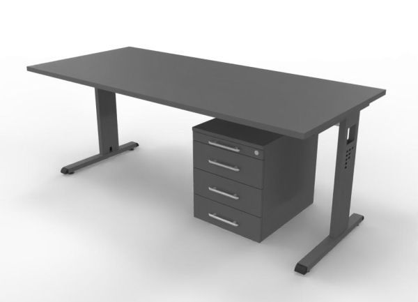 Büromöebel-Set OR1S Schreibtisch mit Rollcontainer, Gestellfarbe grafit, Dekor Tischplatte wählbar, sofort lieferbar, versandkostenfrei.