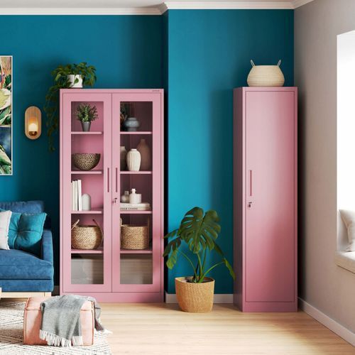 Büroschrank Aktenschrank Metallschrank Lagerschrank 185 x 45 x 40 cm Rosa