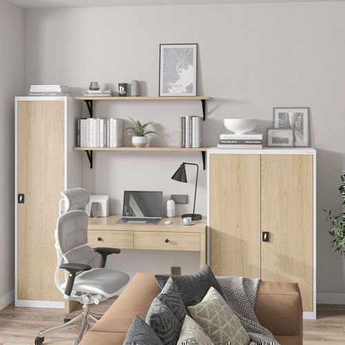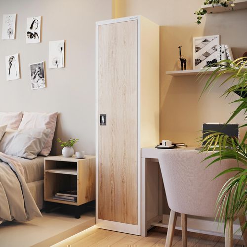 Büroschrank Aktenschrank Metallschrank Lagerschrank 185 x 45 x 40 cm Weiß-Holzoptik