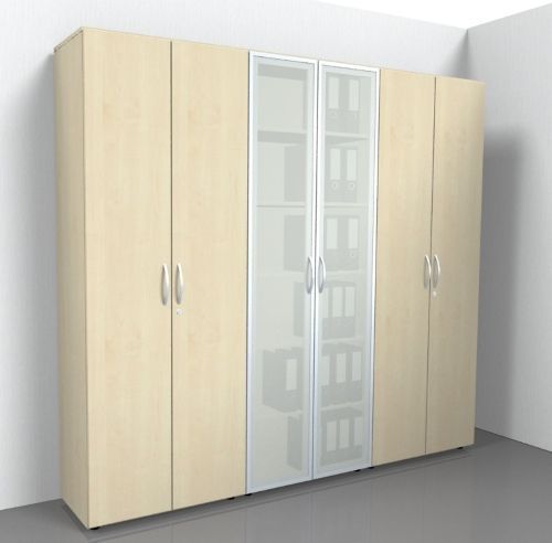 Büroschrankwand 3860 Mega 6 Ordnerhöhen, Höhe 216 cm - Gesamtbereite 240 cm - Schränke einzeln stellbar. Büroschrank lieferbar in 4 Dekorfarben - Schnellliefferung