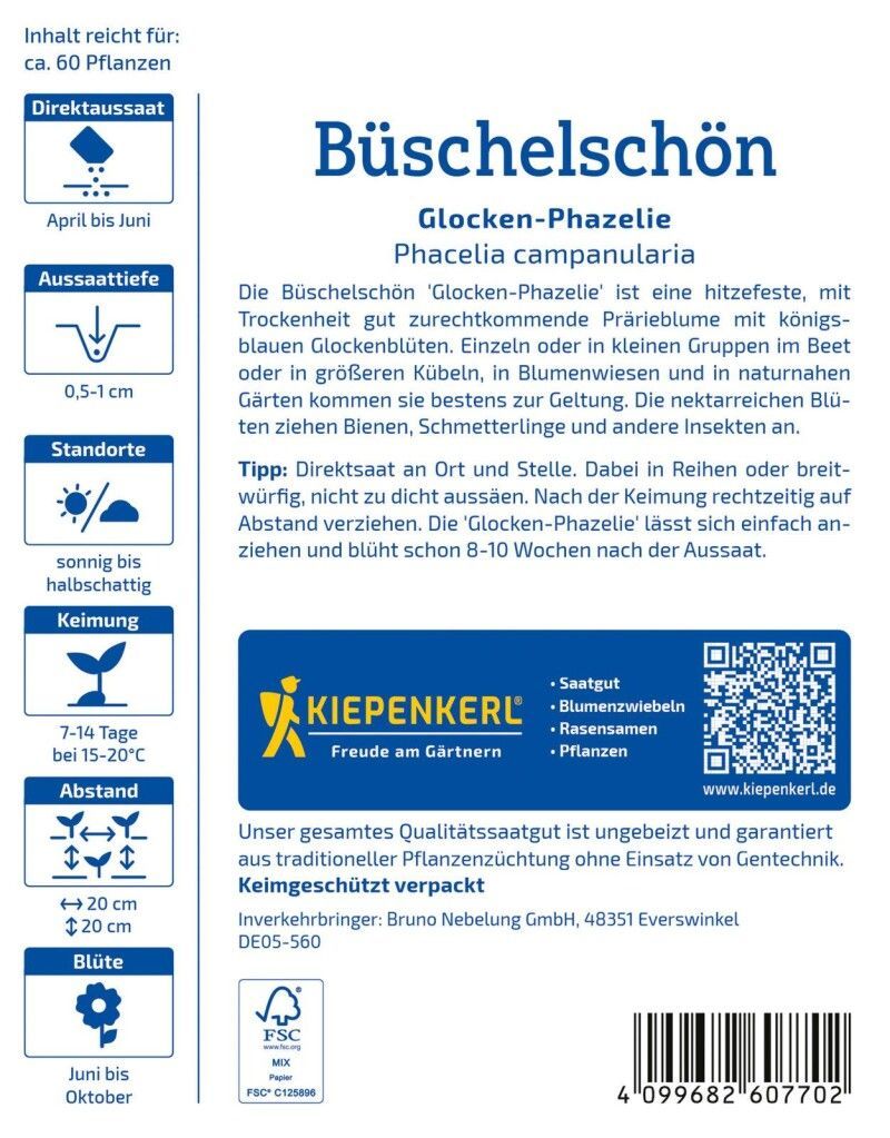 Kiepenkerl Büschelschön Glocken-Phazelie, robust - hitzefeste Beetblume - gute