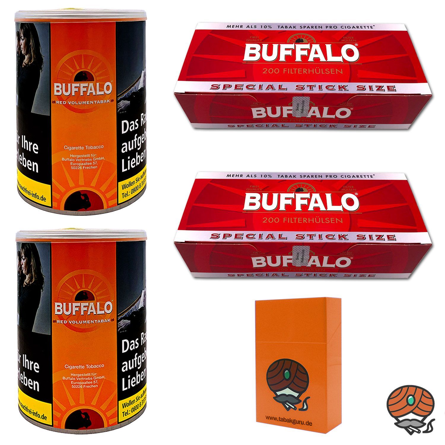 Buffalo Red/Rot Volumentabak Dose 2x 75g + Buffalo Red Extra Hülsen + Zubehör