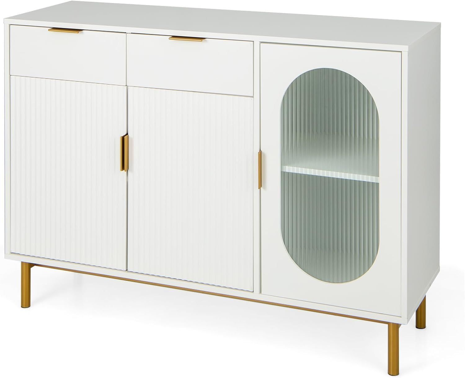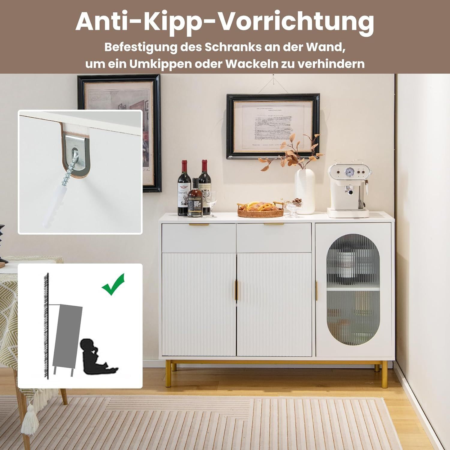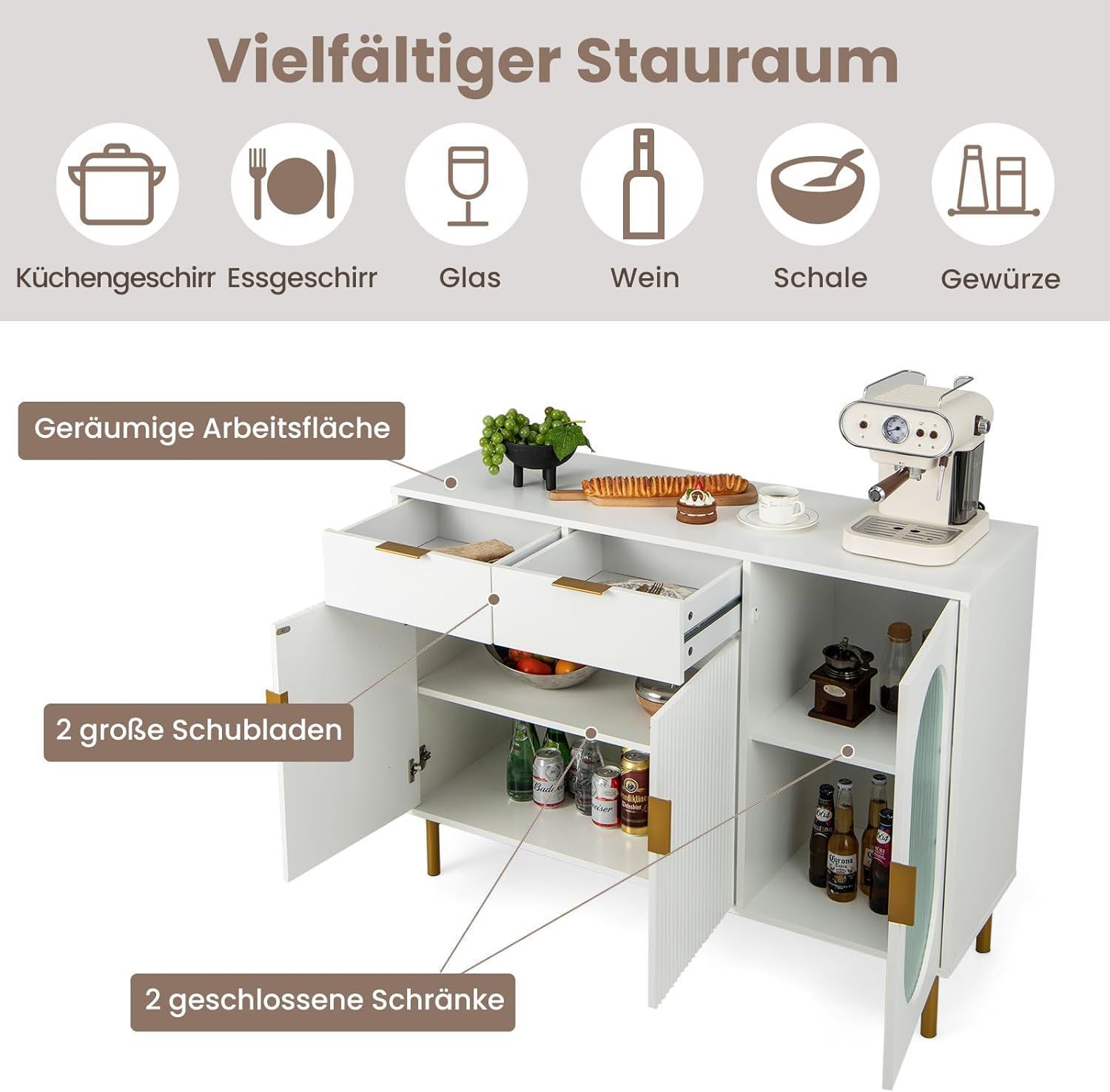 Buffetschrank mit Glast¨¹ren, Sideboard mit 2 Schubladen & Metallbeinen, K¨¹chenschra