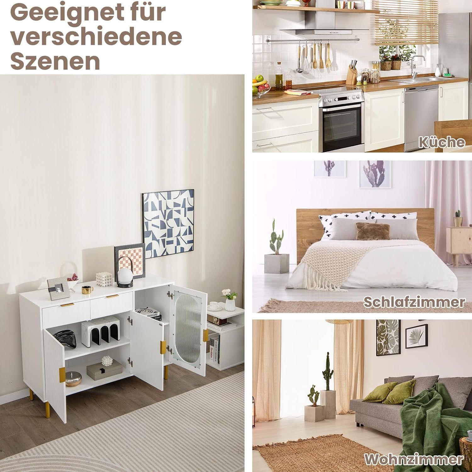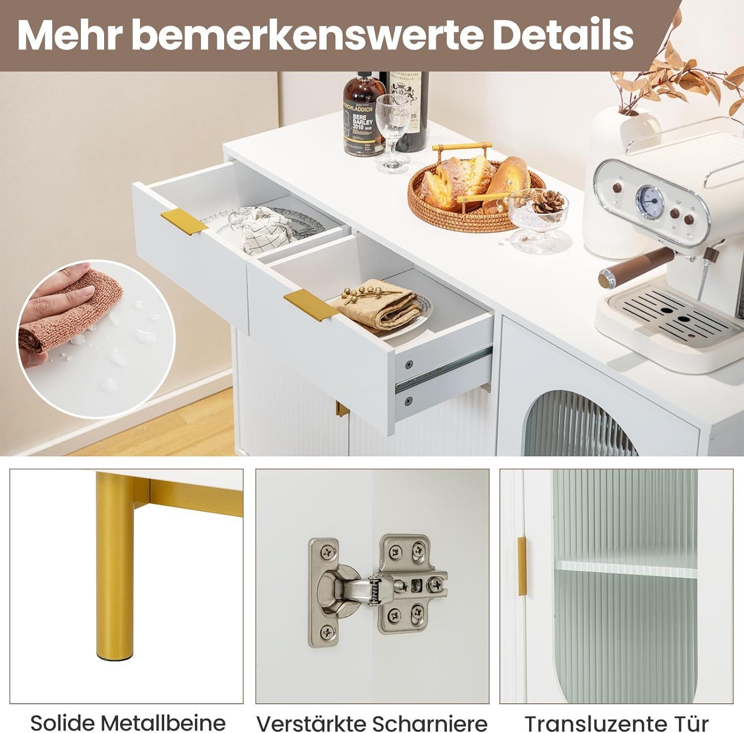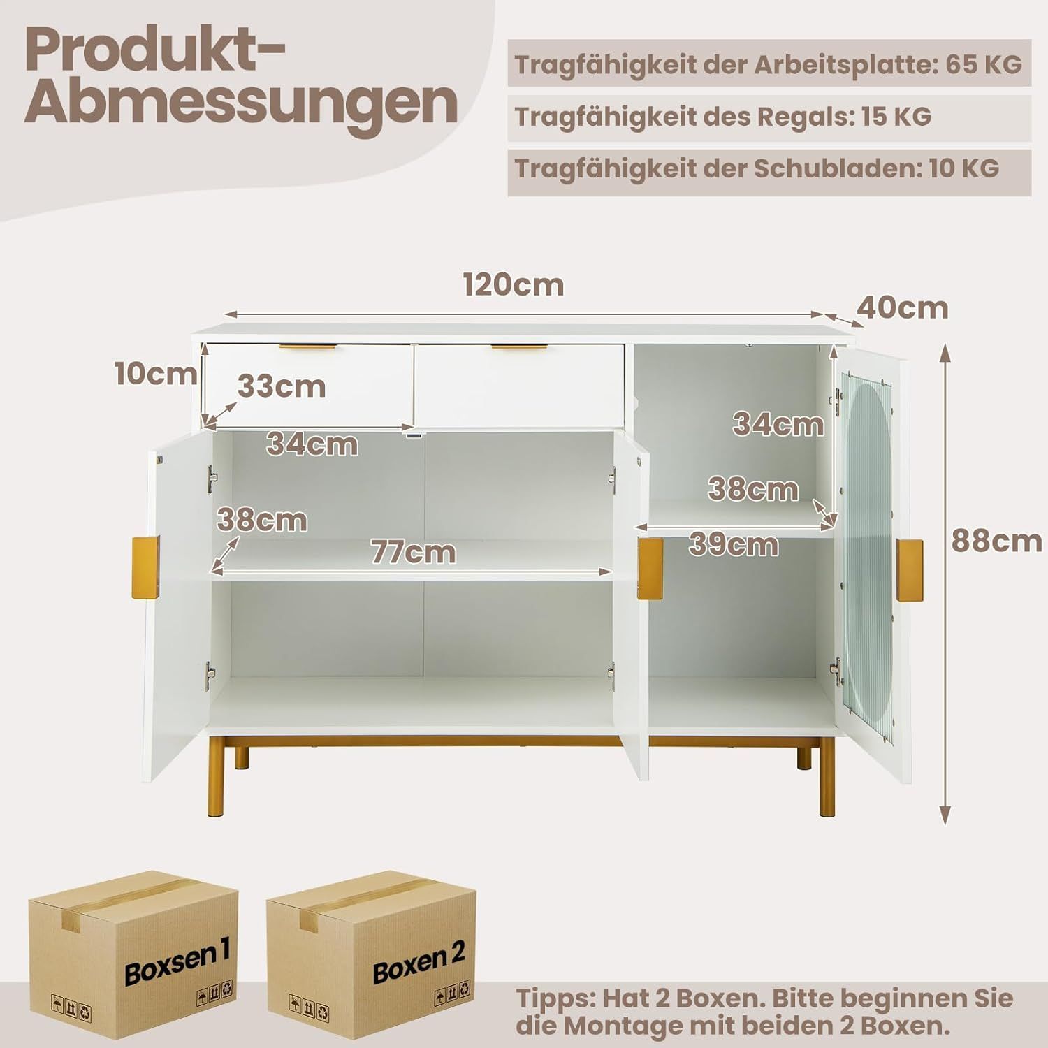 Buffetschrank mit Glast¨¹ren, Sideboard mit 2 Schubladen & Metallbeinen, K¨¹chenschra