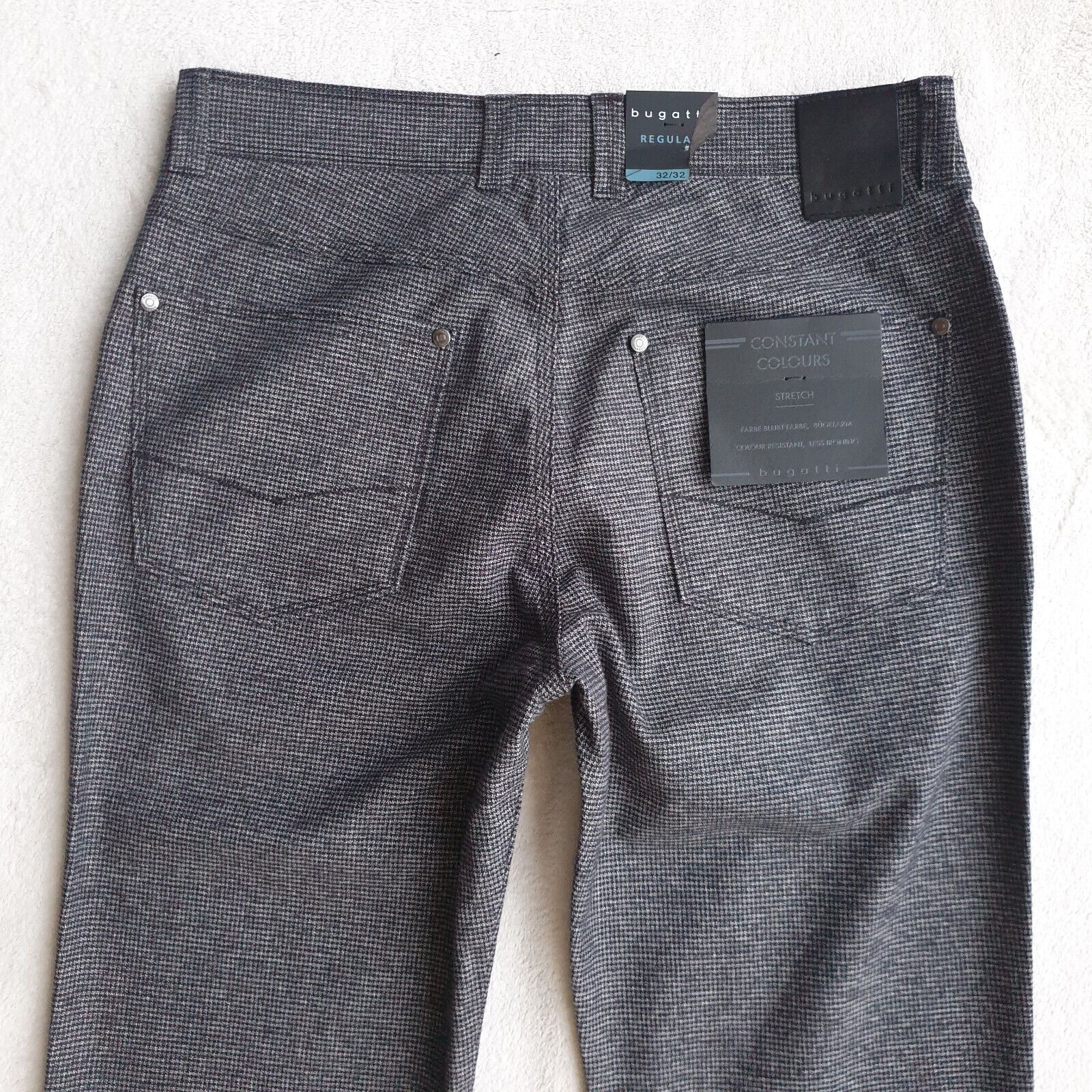 Bugatti Hose Style: 3020 Art.:46110 CONSTANT COLOURS Farbe bleibt Farbe. Stretch W 32, 33, 34, 36, 38, 40 L 30, 32, 34 Farbe: Dunkelgrau meliert (280) Bügelarm. Material: 98%Baumwolle,2%Elasthan NEU mit Etikett UVP: 89,99 Euro Beim Kauf von mehreren Artikeln wird nur einmalig Porto berechnet. (je na