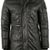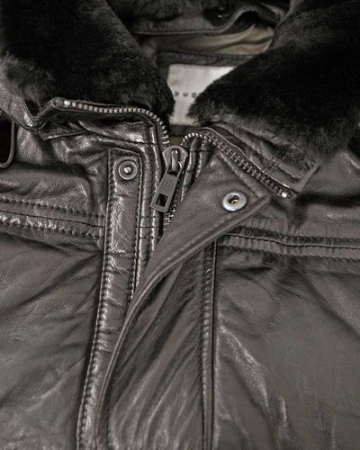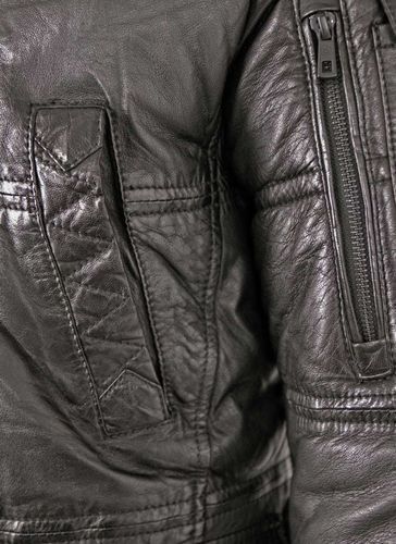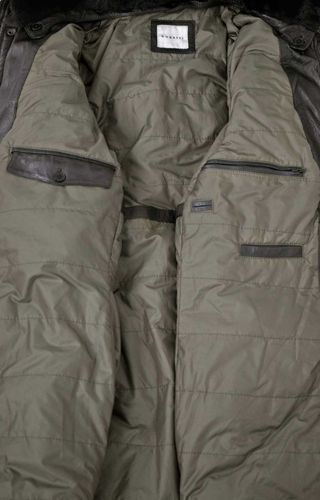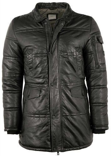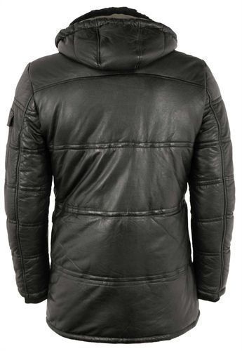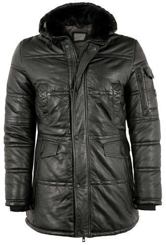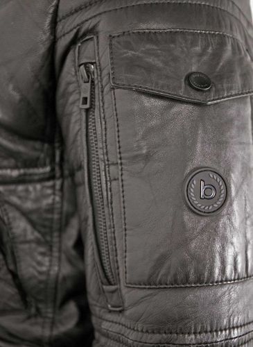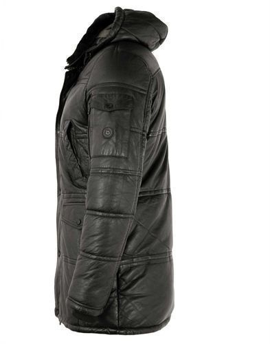 Bugatti Bugatti - Herren Ledermantel Steppmantel Kapuze Echtpelz Lammnappa schwarz