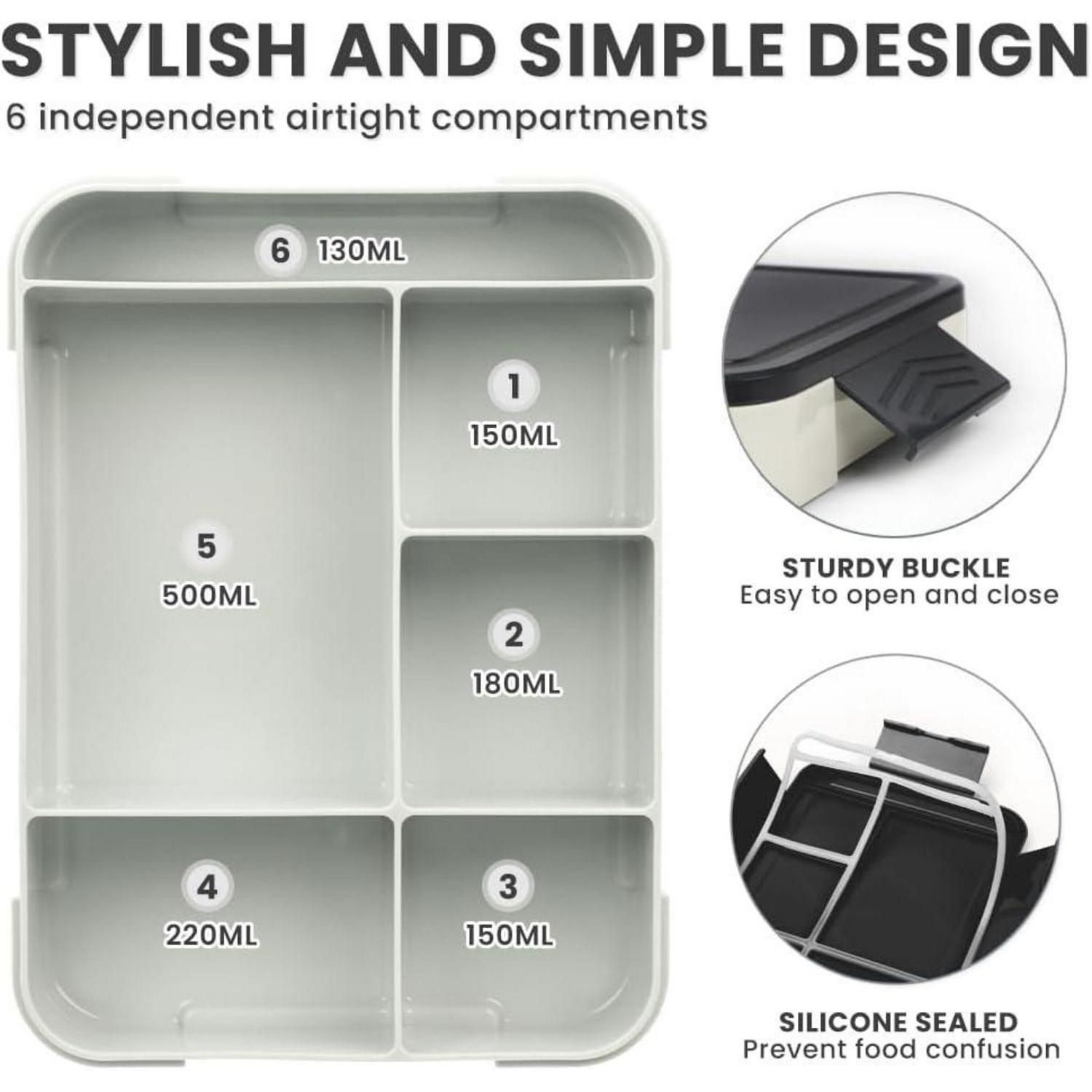 Bugucat Brotdose Kinder Lunchbox Bento Box Auslaufsicher 1330ML 6 Fächer