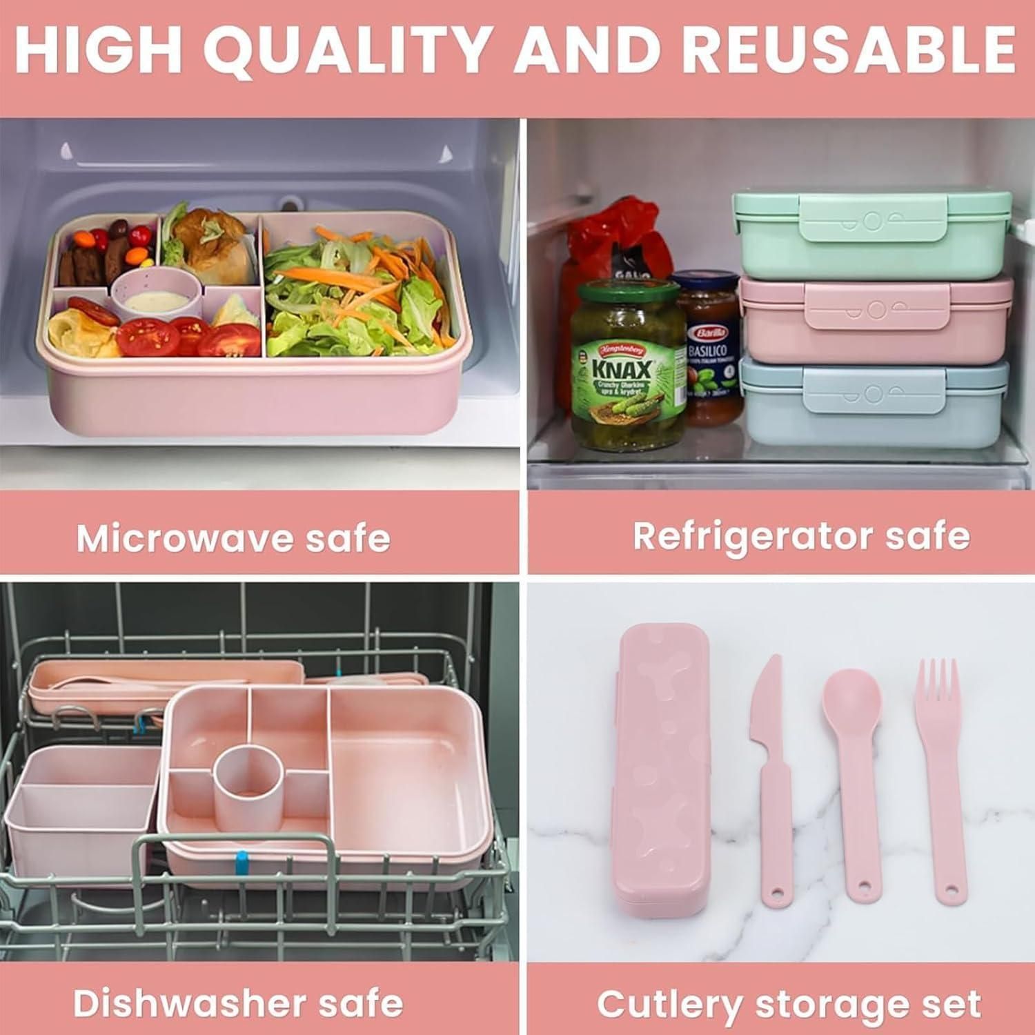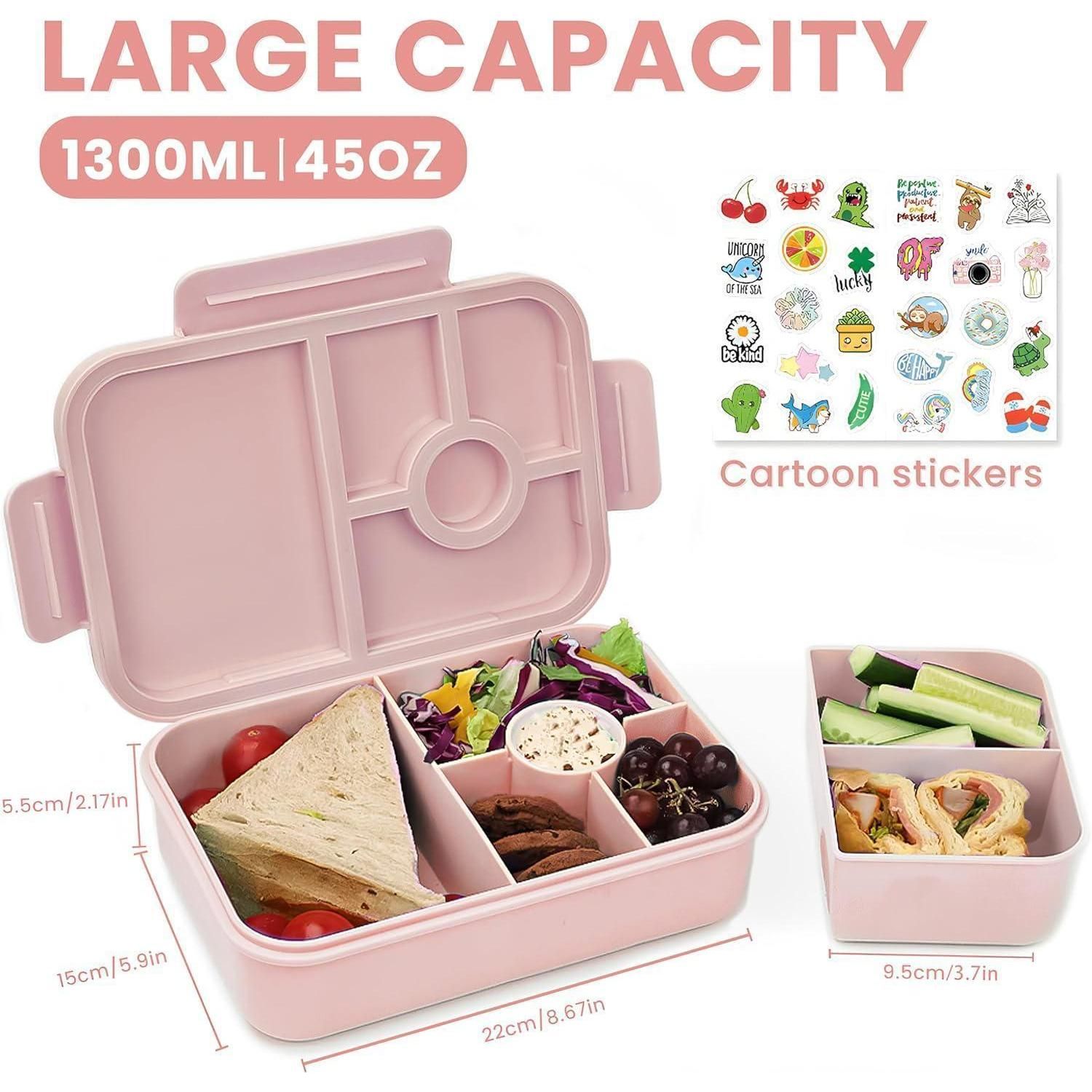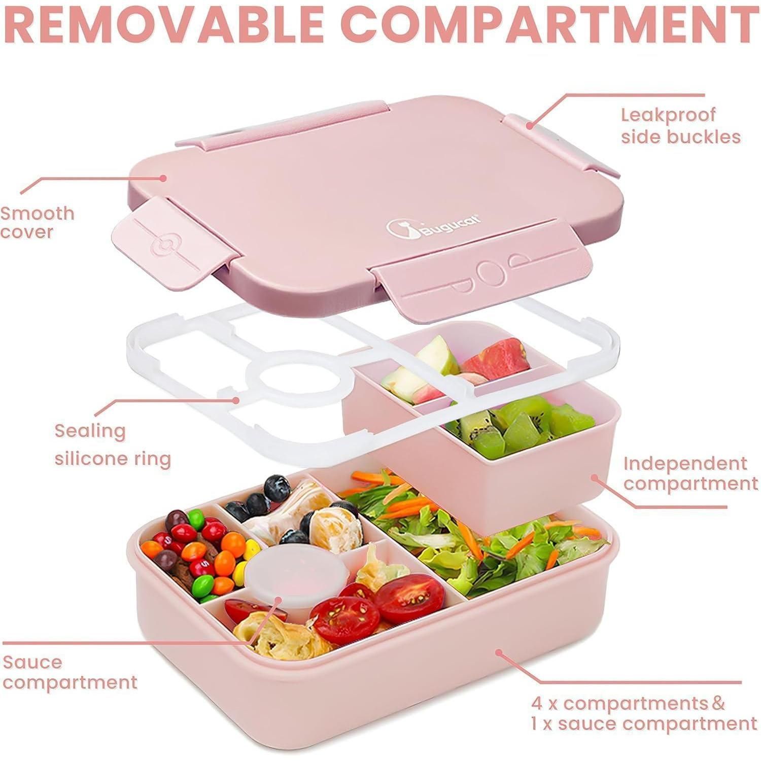 Bugucat Lunchbox Kinder mit Fächern 1300ml 3-teilig Auslaufsicher Bento Box Rose