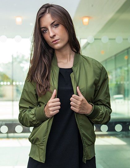 Ladies Nylon Bomber Jacket Build Your Brand Neutrales Größenlabel ohne Branding Für Nackendruck geeignet Ripp-Bündchen an Saum und Ärmelöffnung Seitentaschen oberhalb des Saums Modischer Bomberjacken-Style Größenlauf XS, S, M, L, XL Materialzusammensetzung 100% Polyester Jacken (Art) Bomberjacken Pf