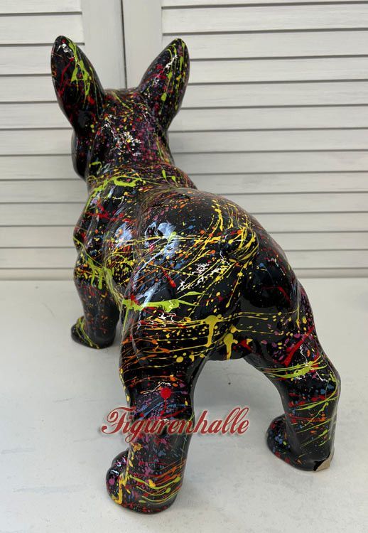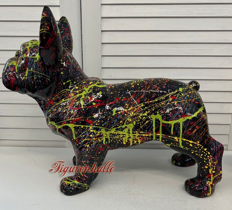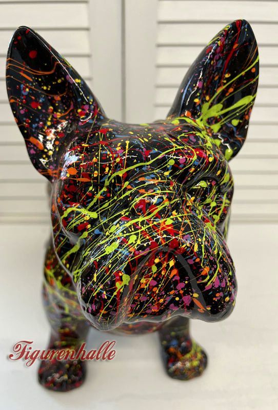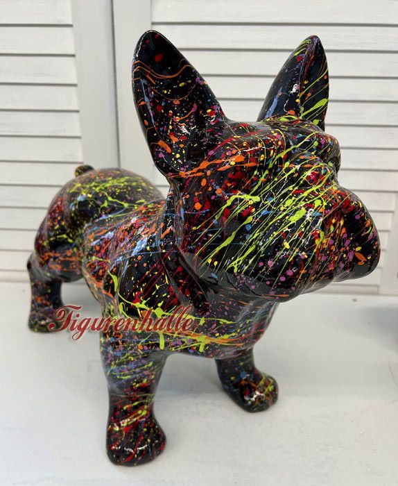 Bulldogge Sonnenbrille Figur Statue Pop Art Kunst Bunt Handgemalt Abstrakt schwarz