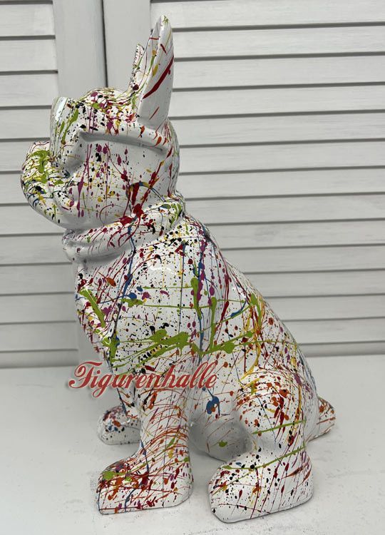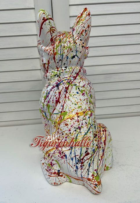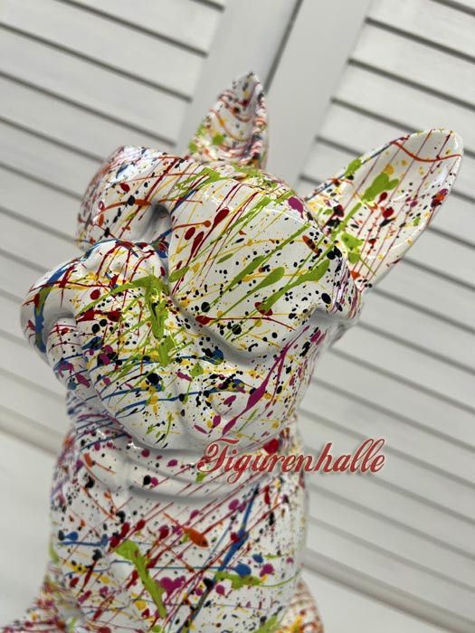 Bulldogge Sonnenbrille Krawatte Figur Statue Pop Art Kunst Bunt Handgemalt Abstrakt