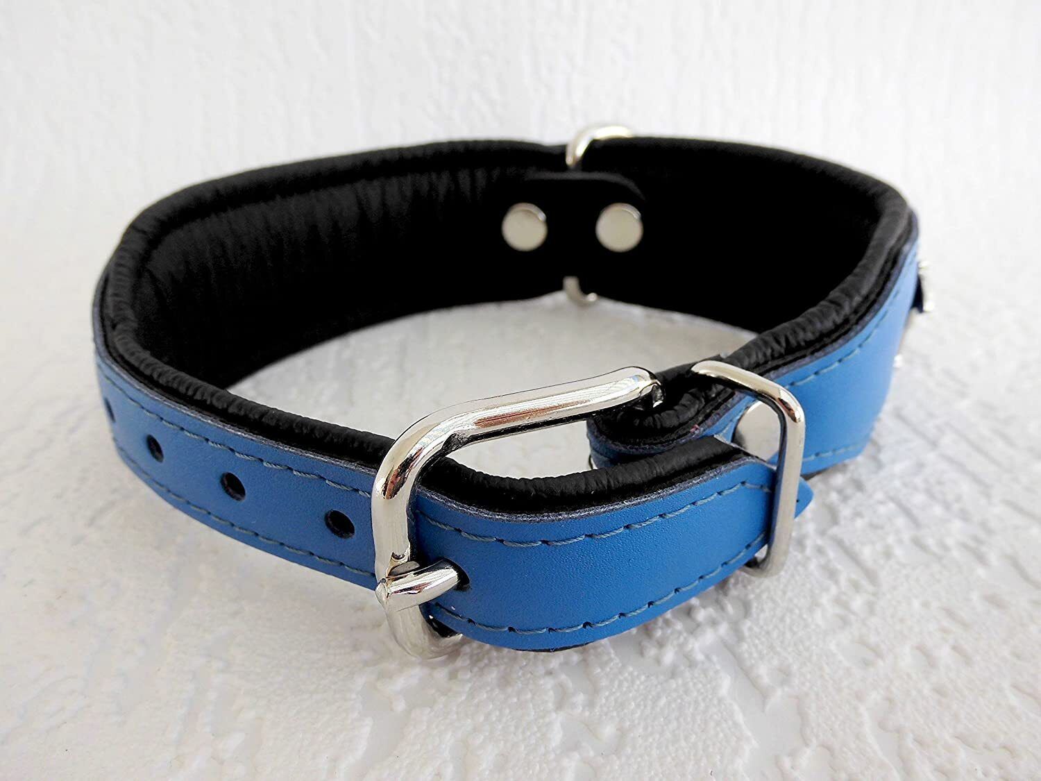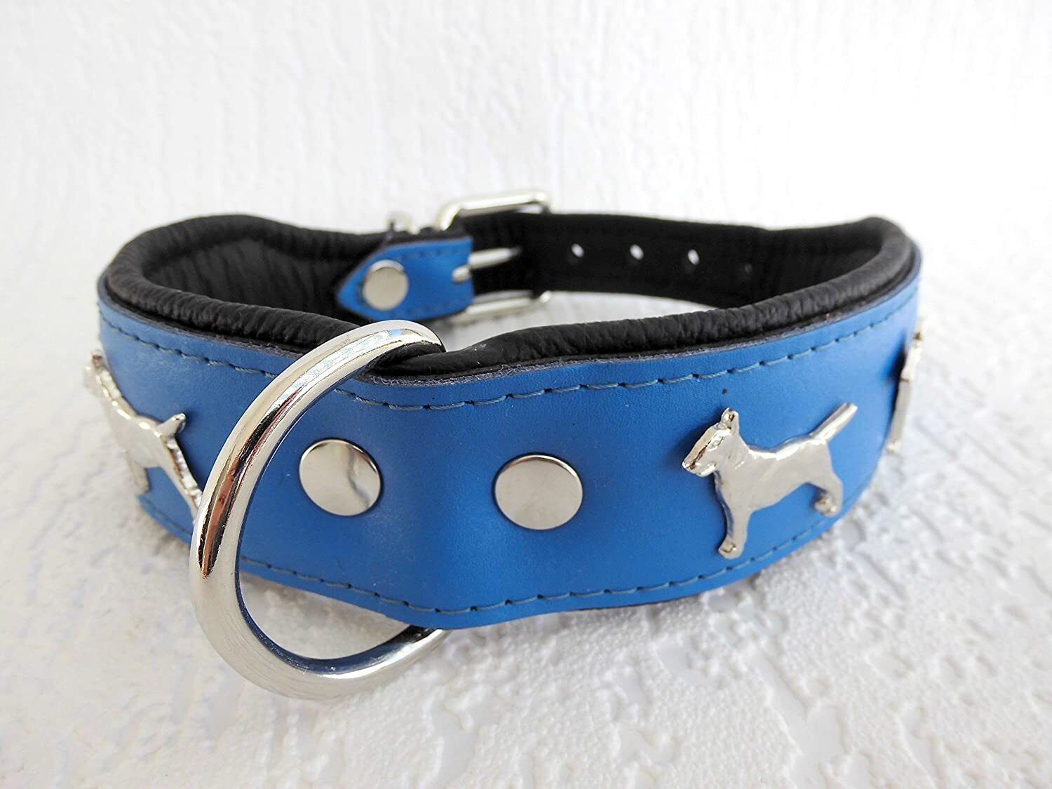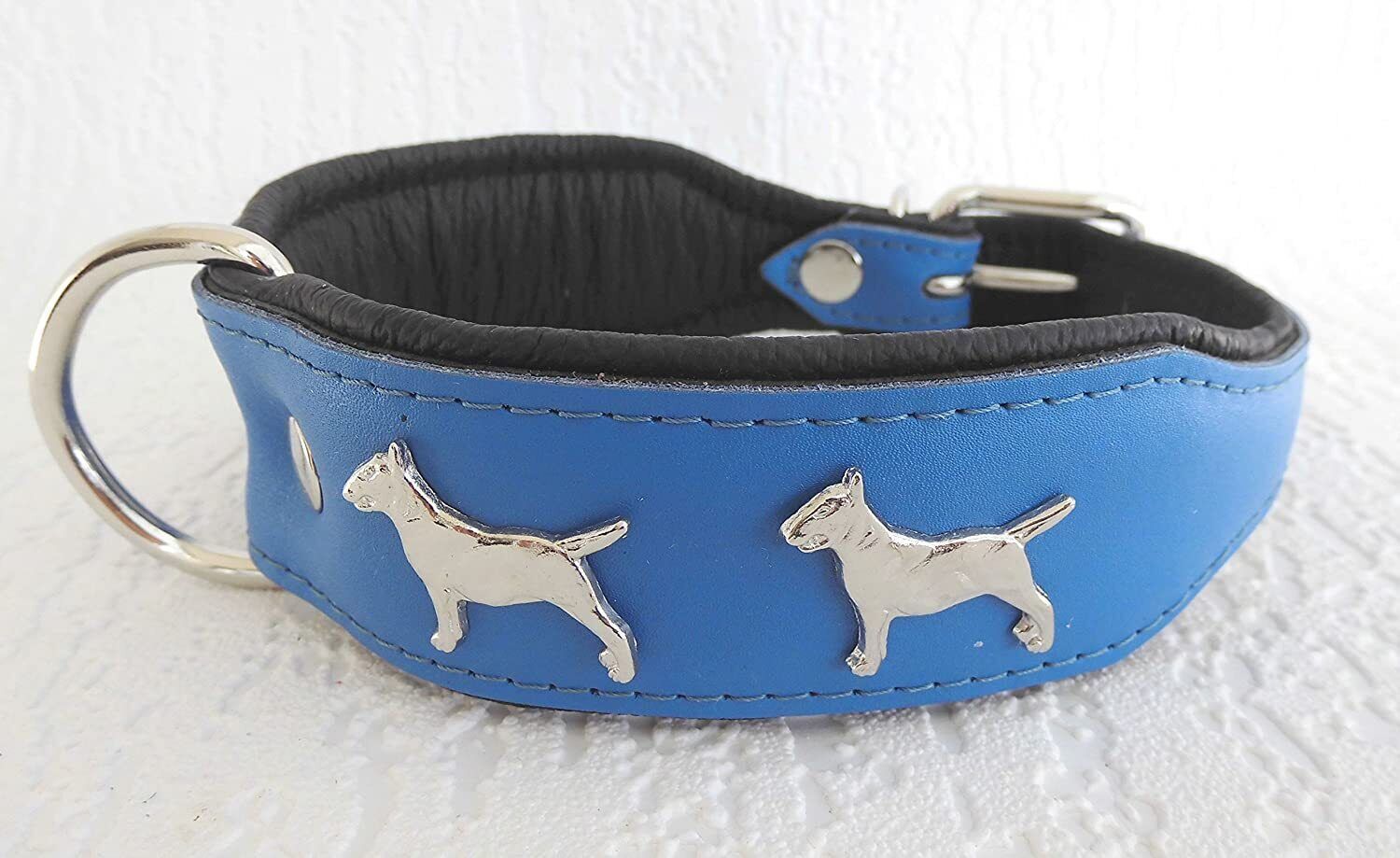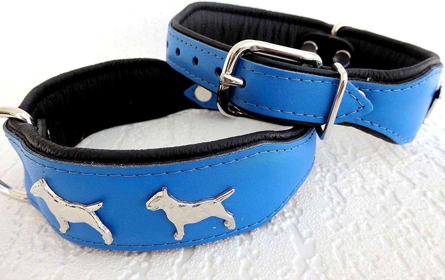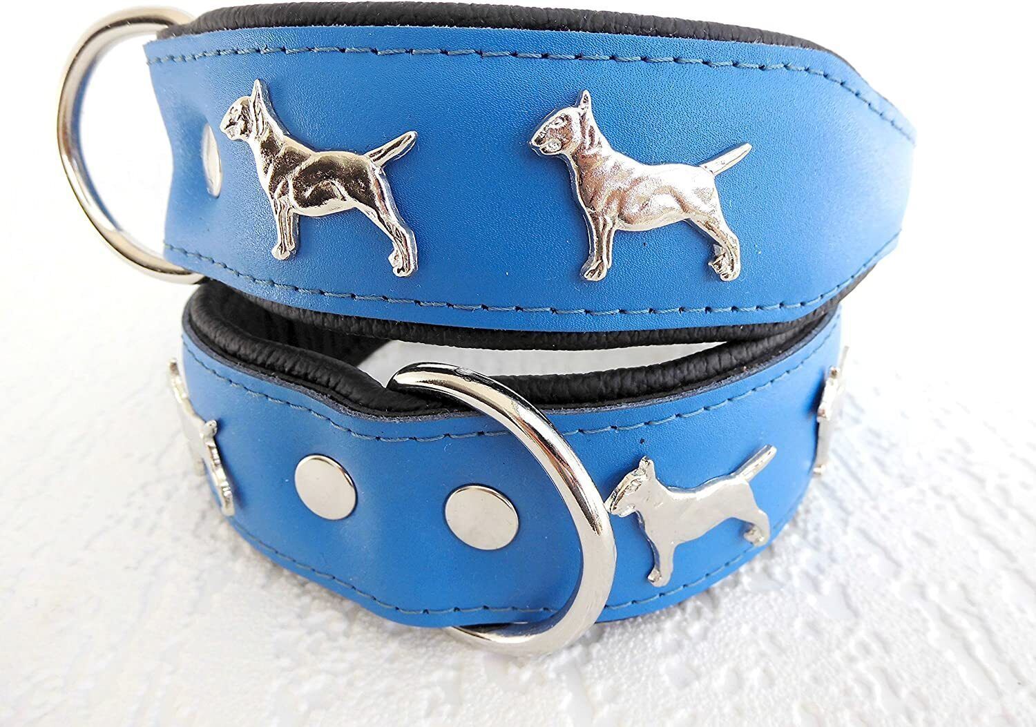 Bullterrier Hundehalsband - Halsumfang 34-40 cm, LEDER, BLAU - Schwarz (743)