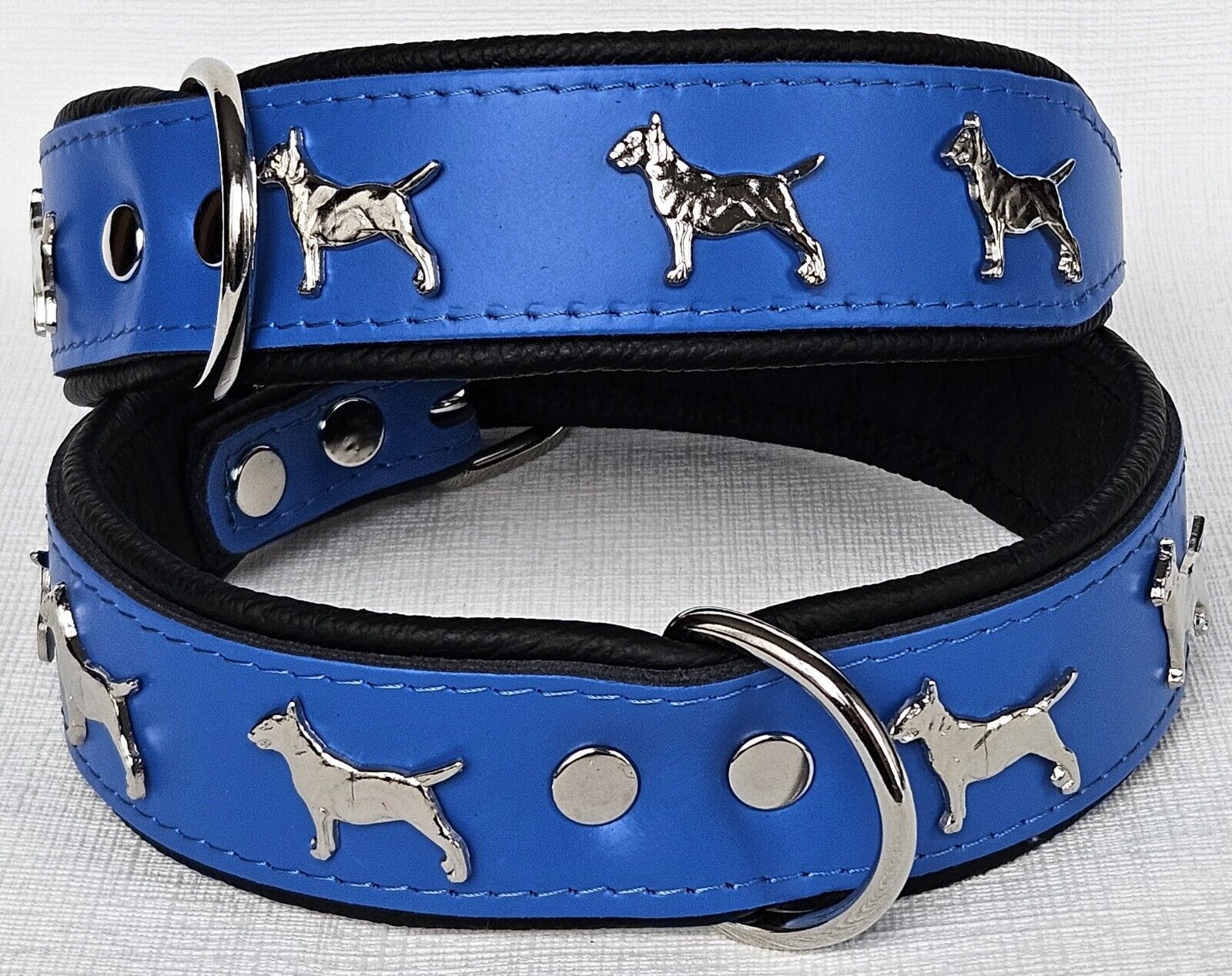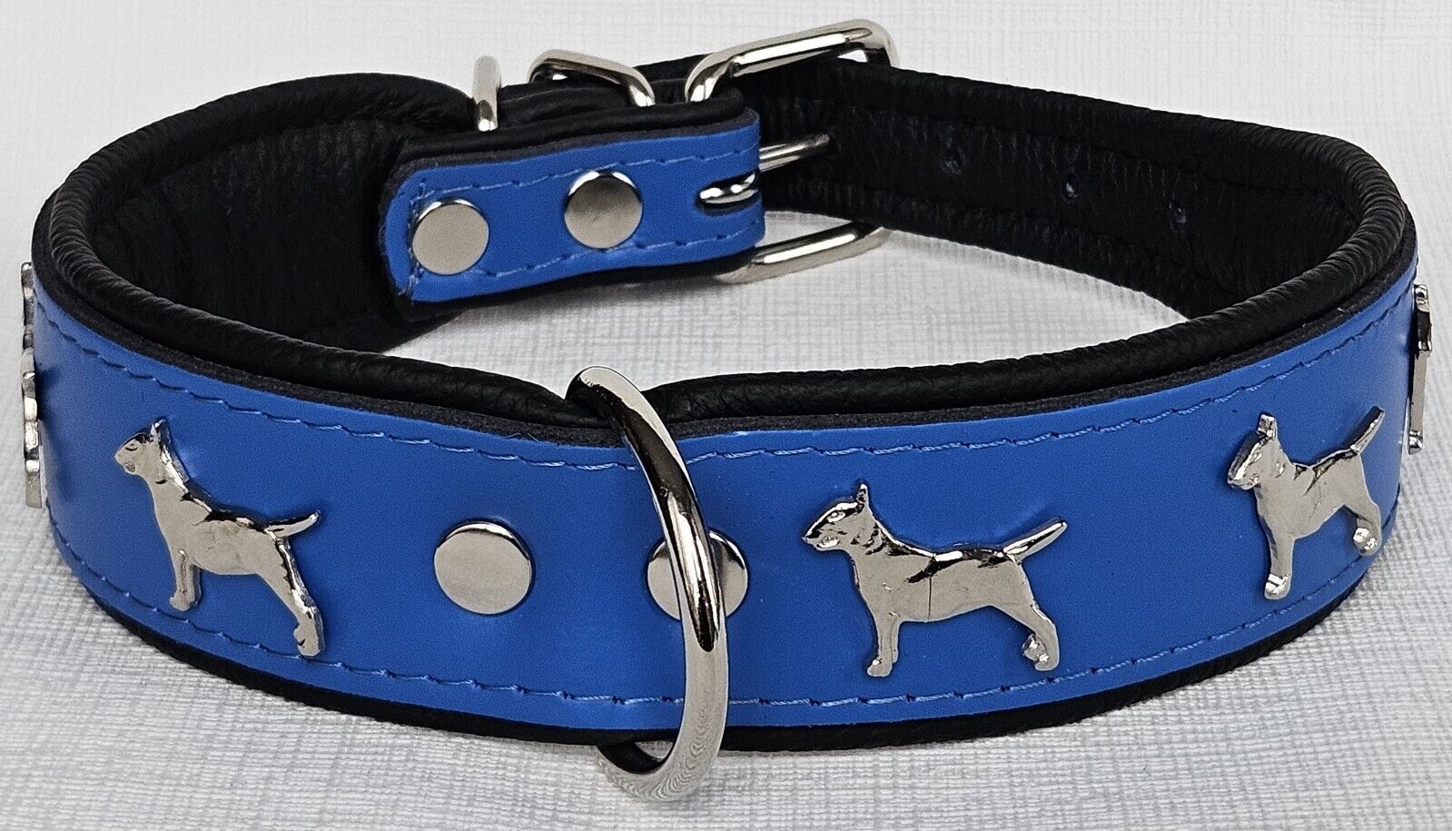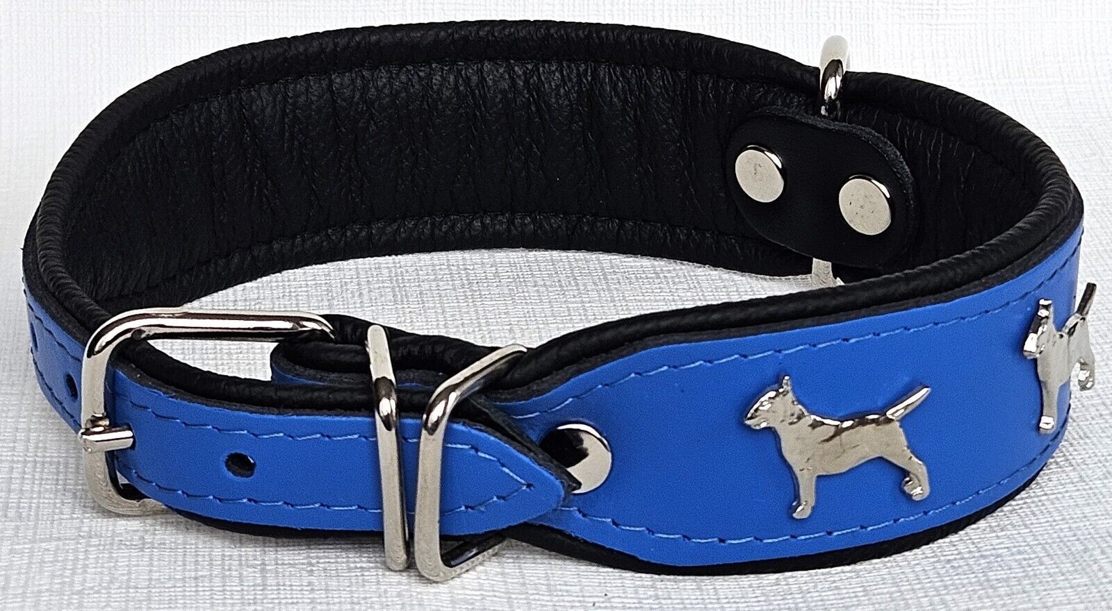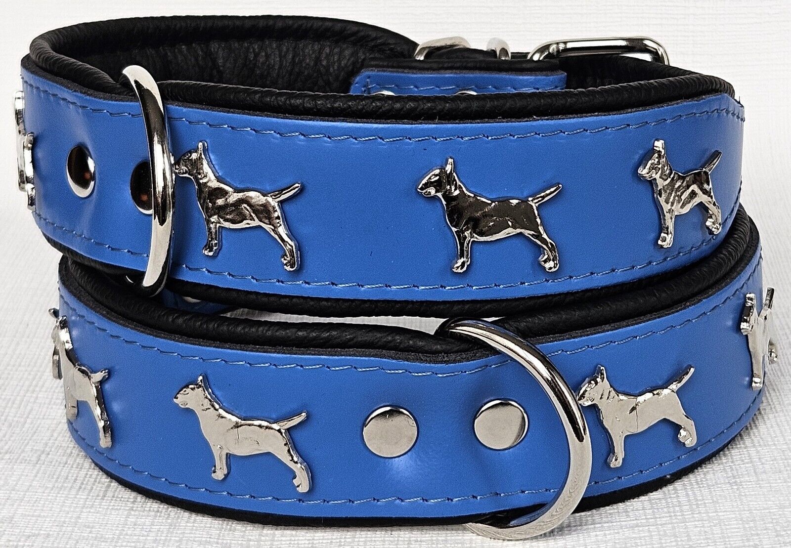 Bullterrier Hundehalsband - Halsumfang 37-46cm, LEDER, BLAU - Schwarz