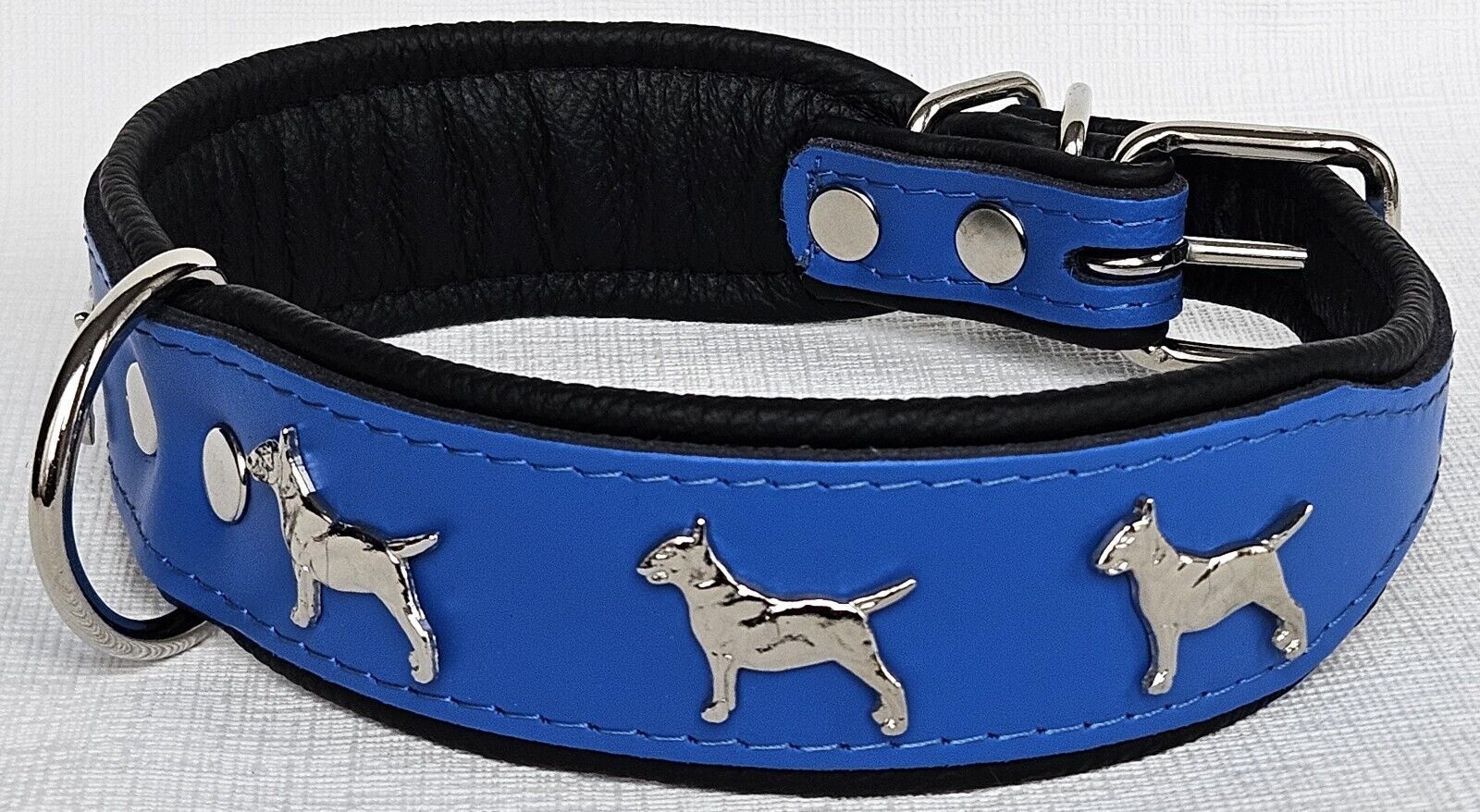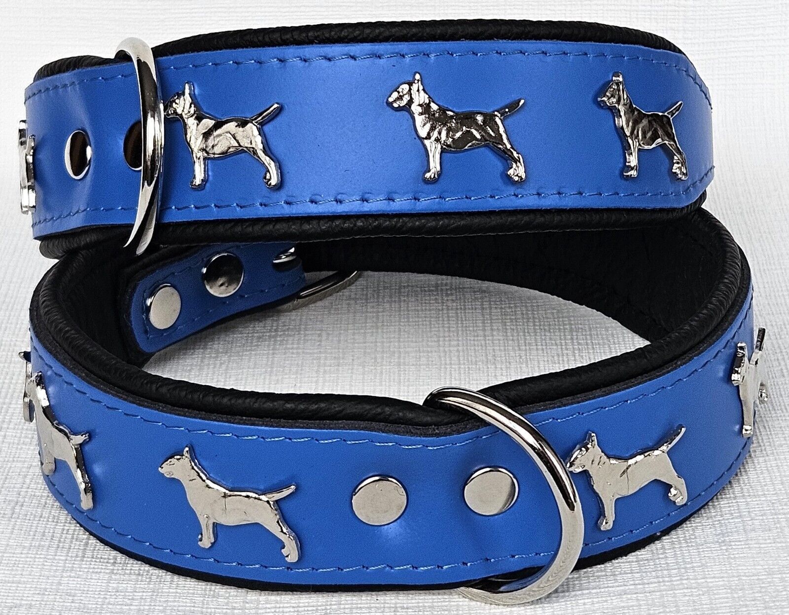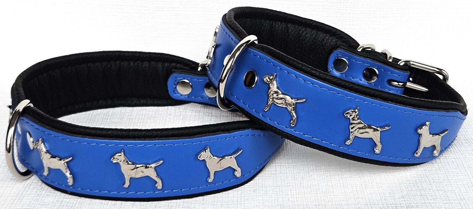 Bullterrier Hundehalsband - Halsumfang 37-46cm, LEDER, BLAU - Schwarz