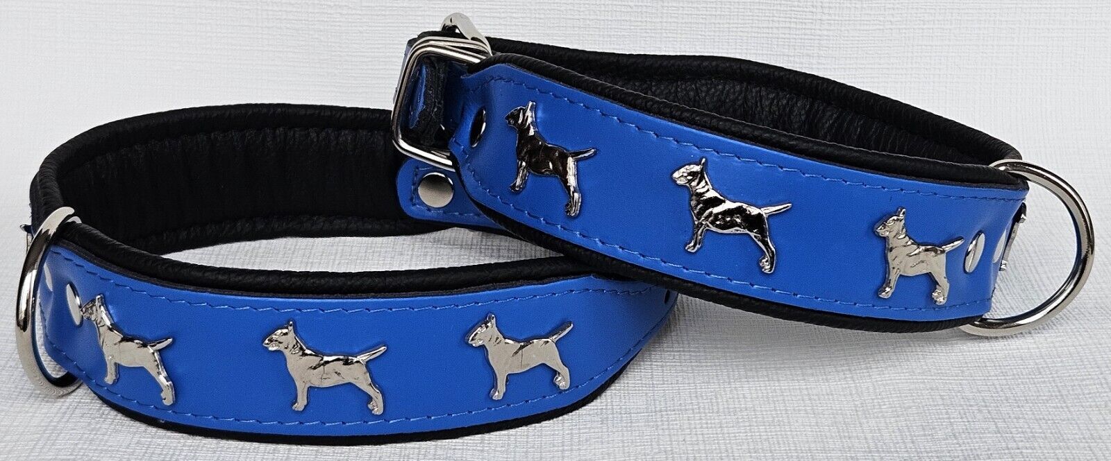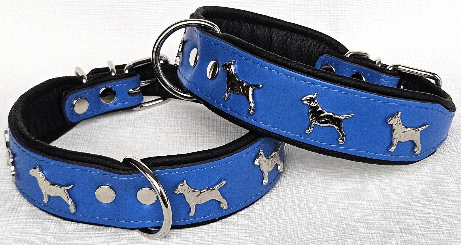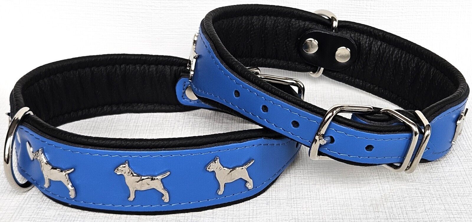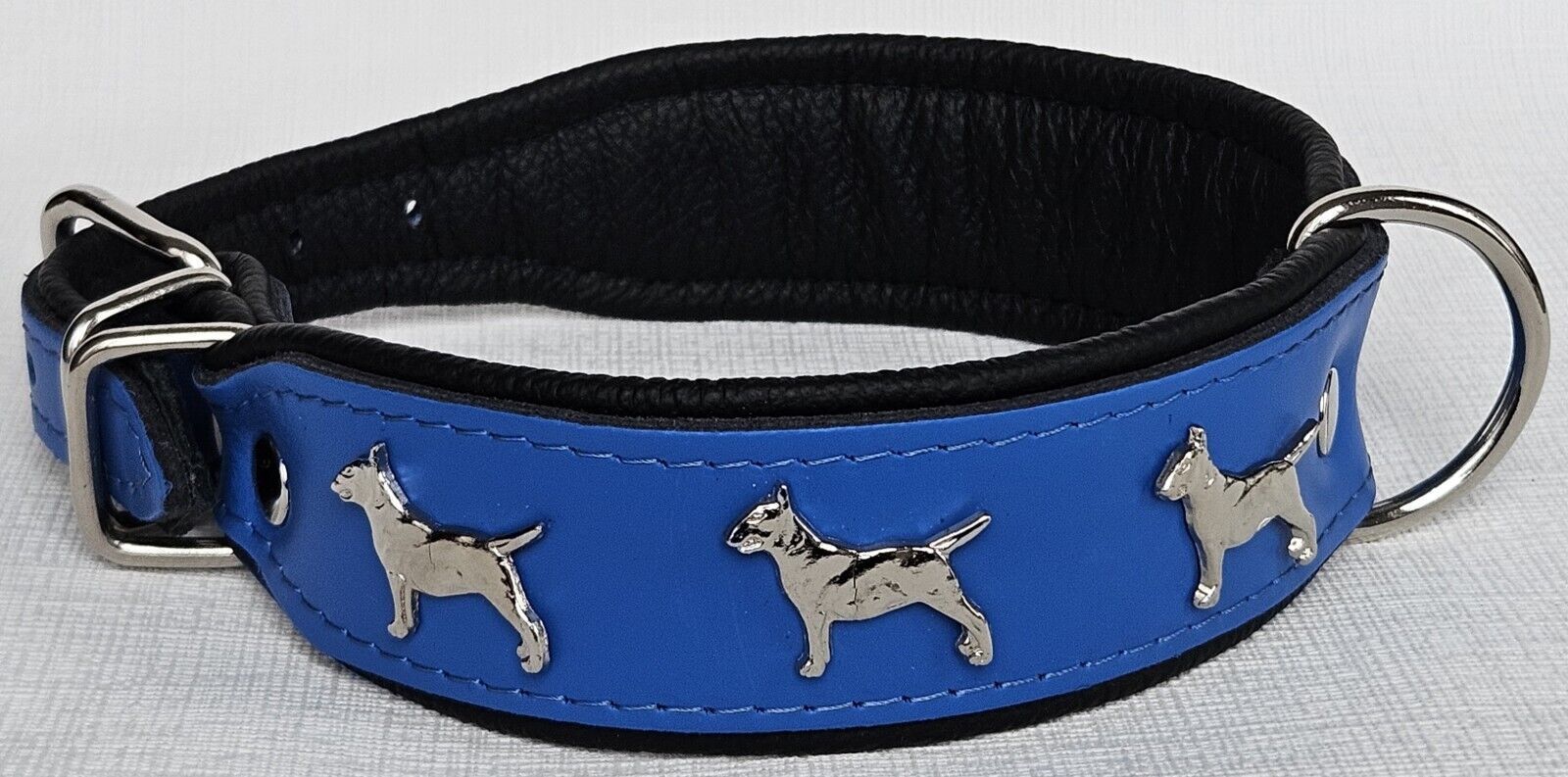 Bullterrier Hundehalsband - Halsumfang 37-46cm, LEDER, BLAU - Schwarz