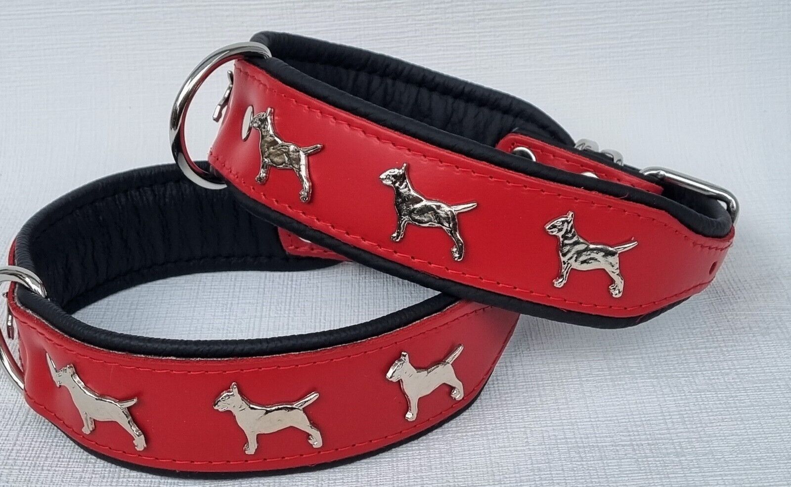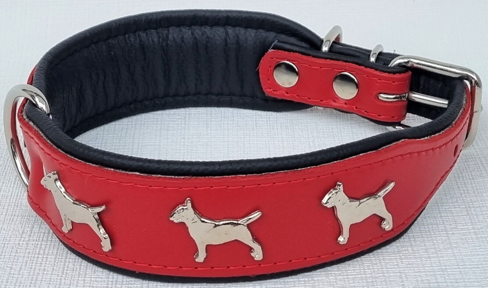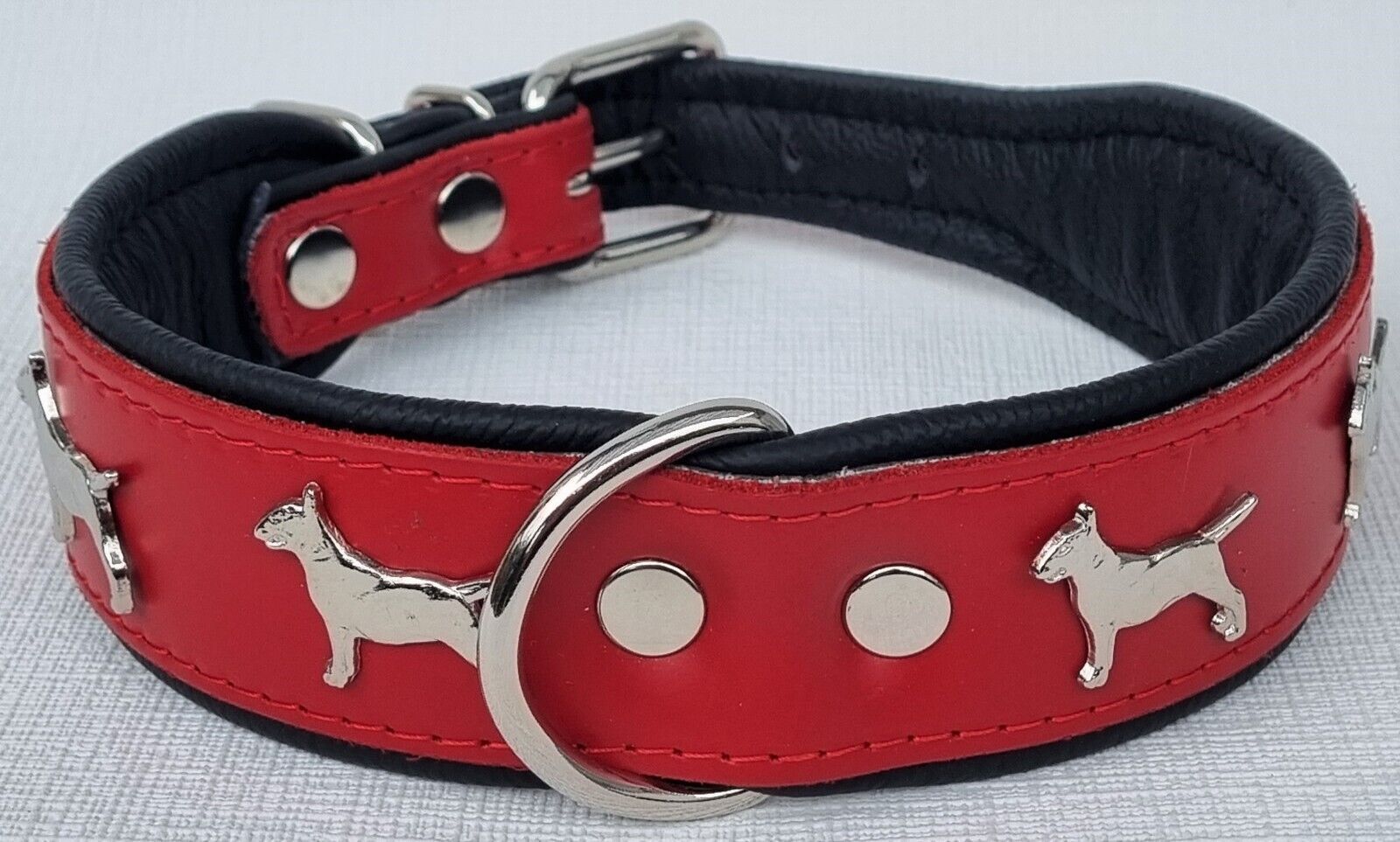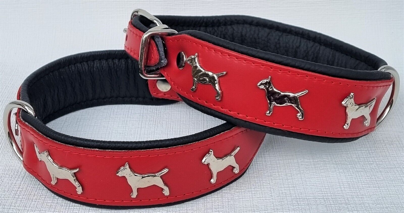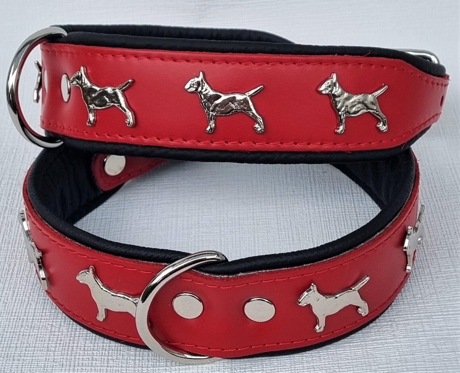 Bullterrier Hundehalsband - Halsumfang 42-50 cm, LEDER, ROT-Schwarz