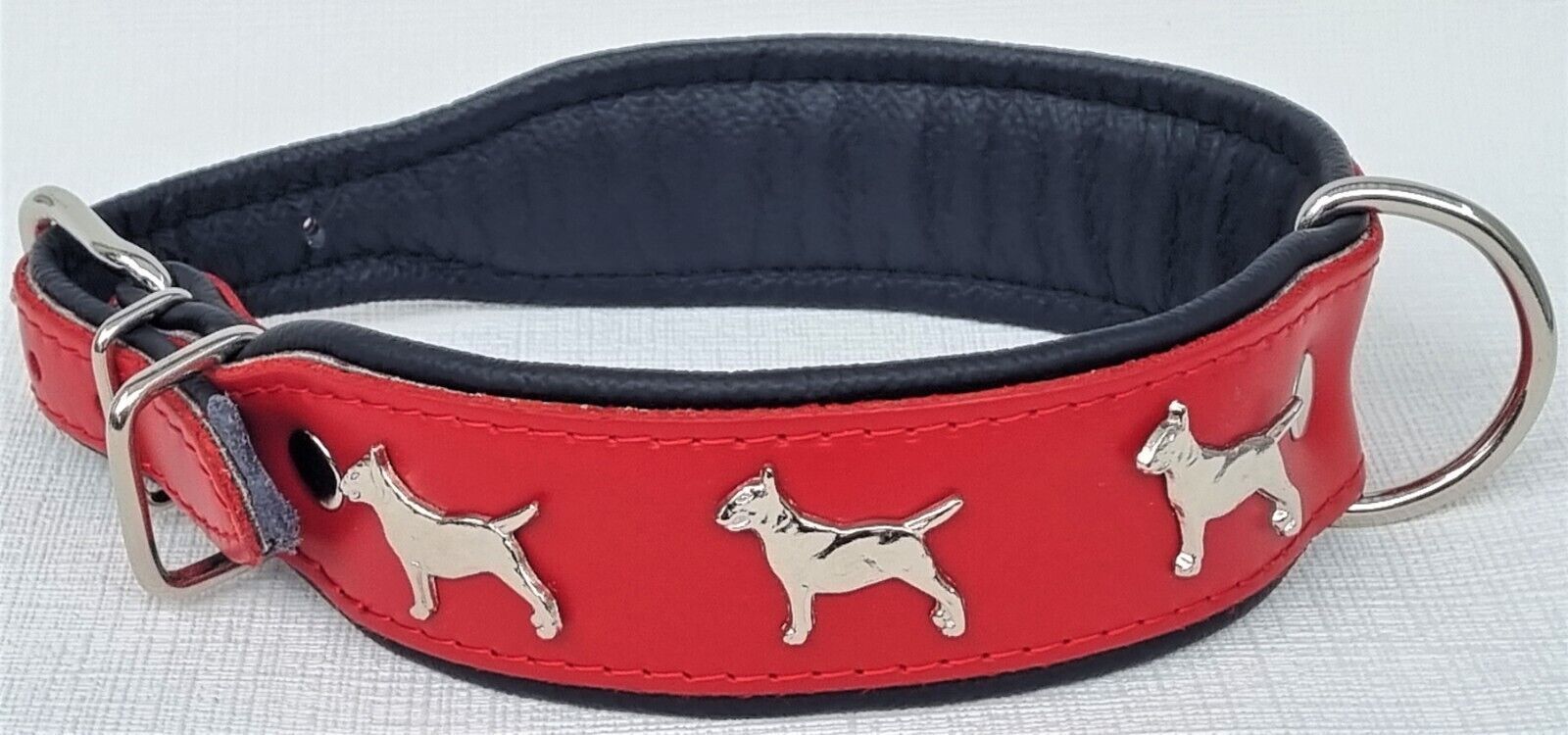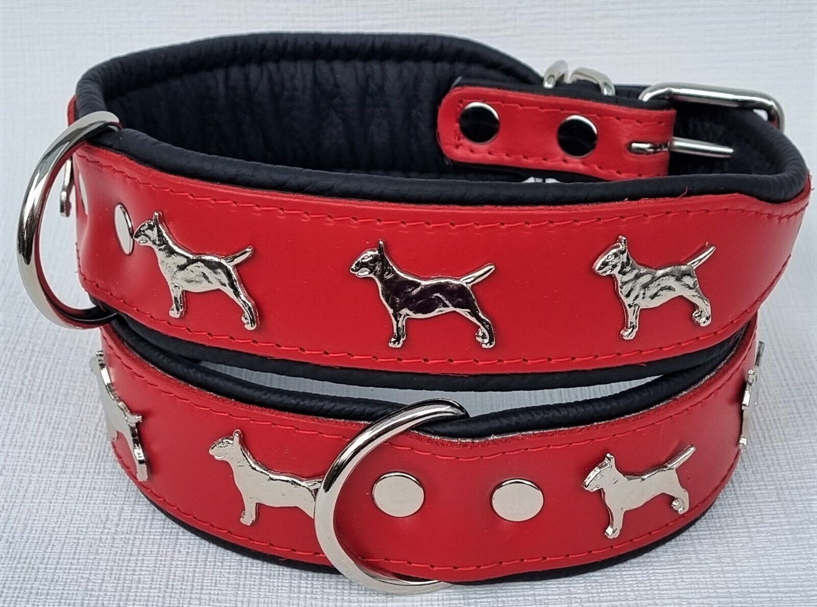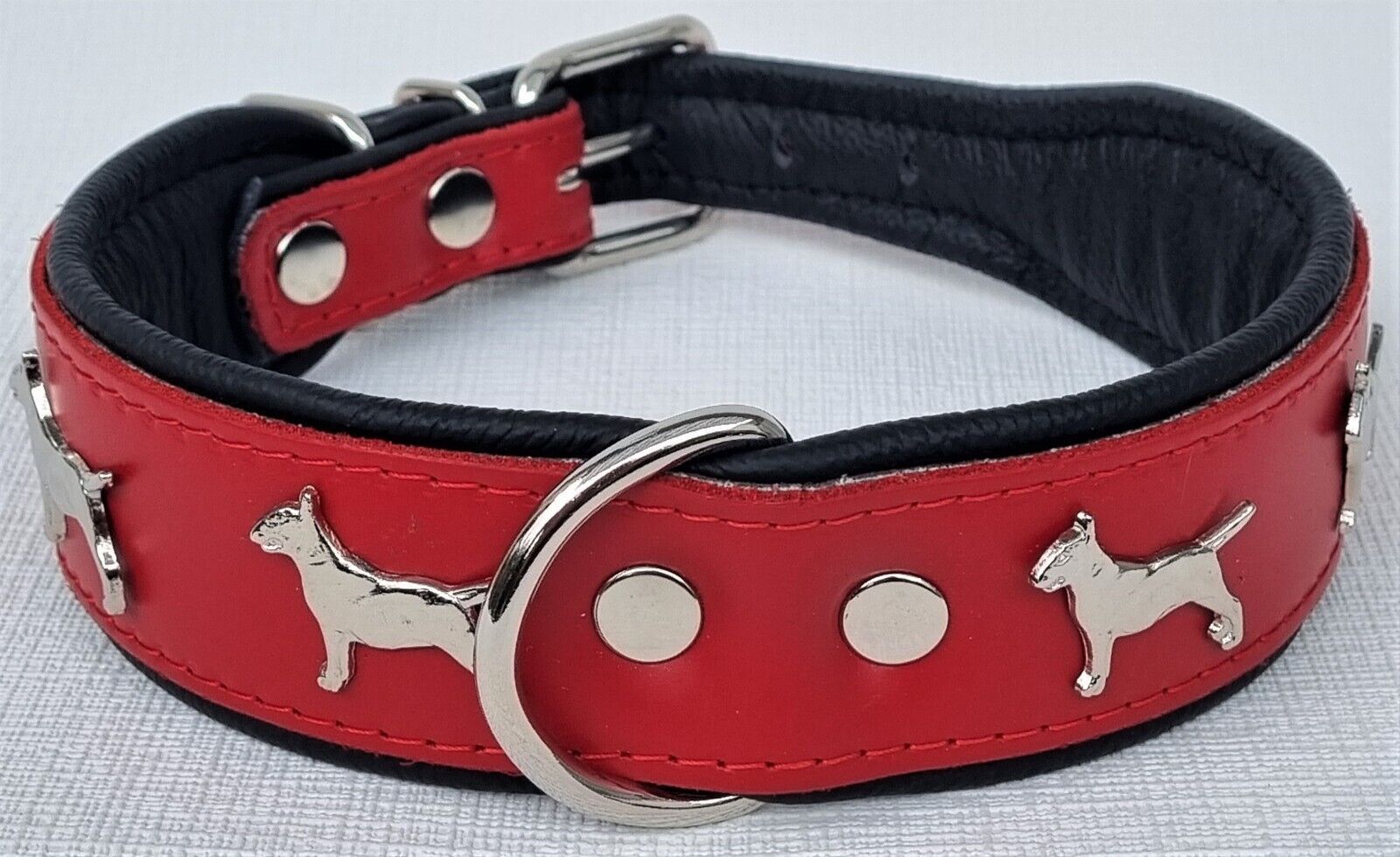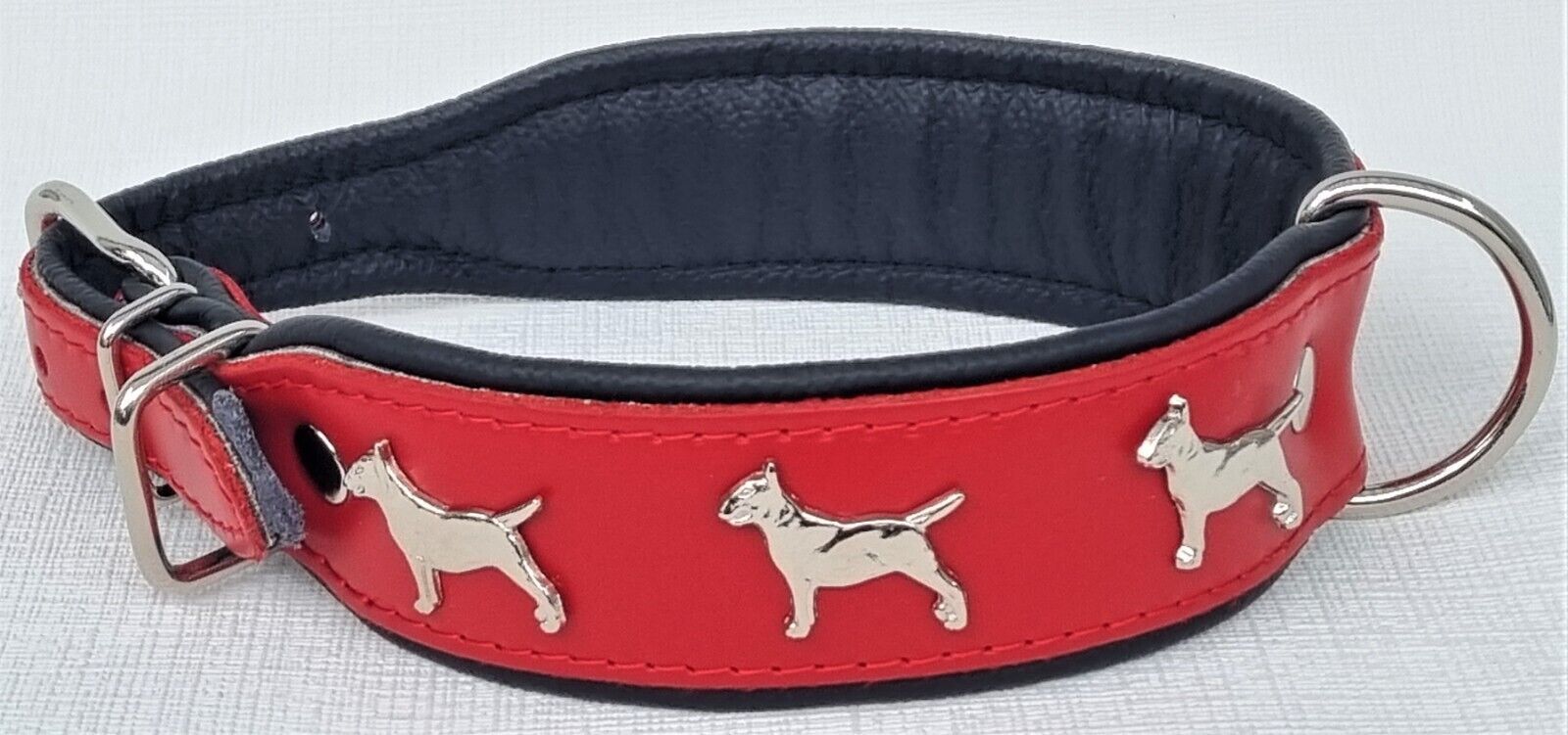 Bullterrier Hundehalsband - Halsumfang 42-50 cm, LEDER, ROT-Schwarz