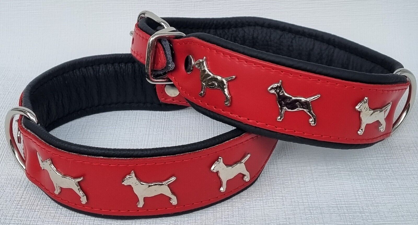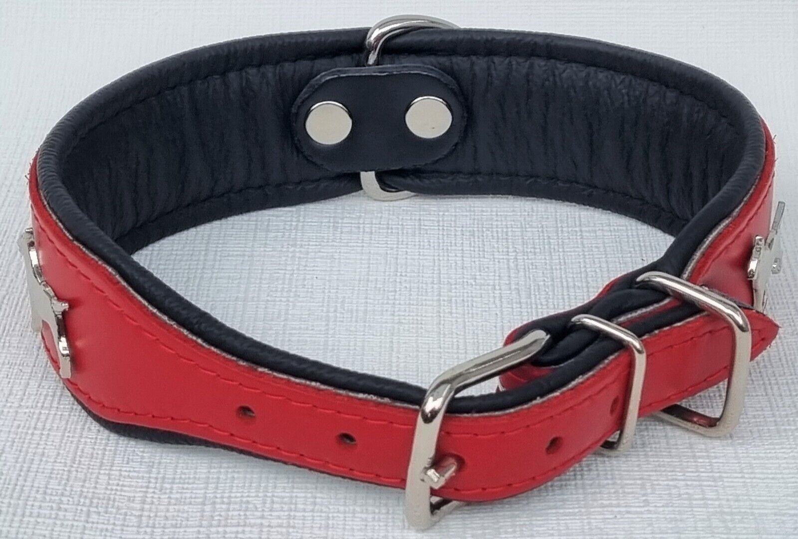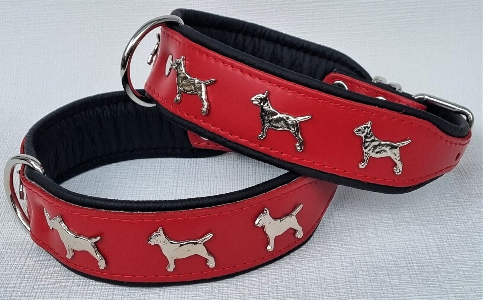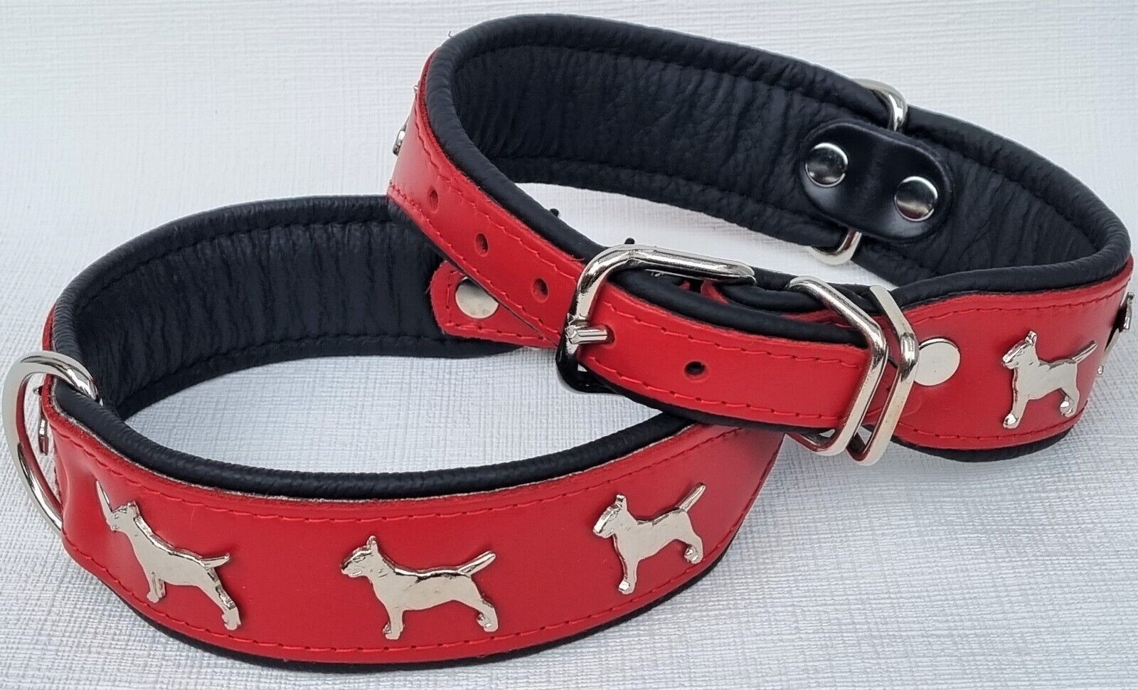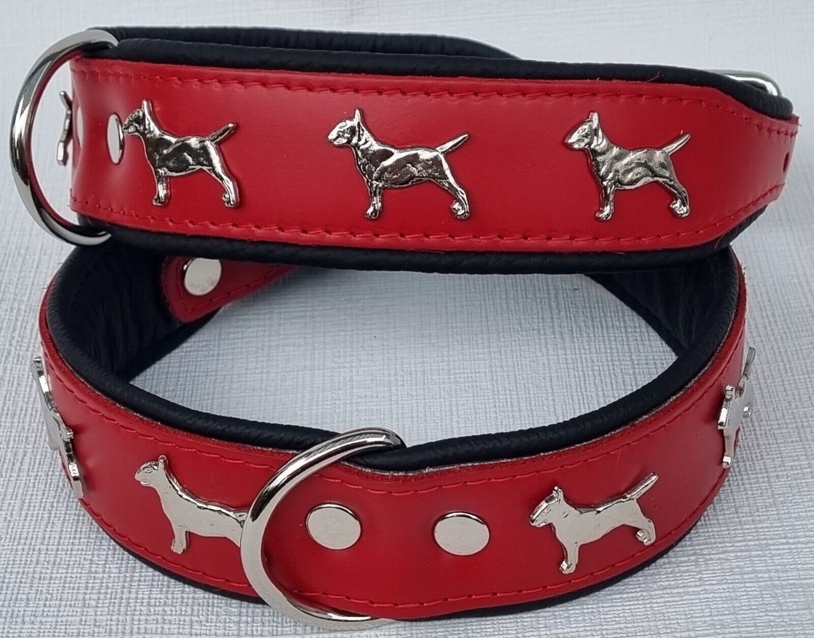 Bullterrier Hundehalsband - Halsumfang 42-50 cm, LEDER, ROT-Schwarz