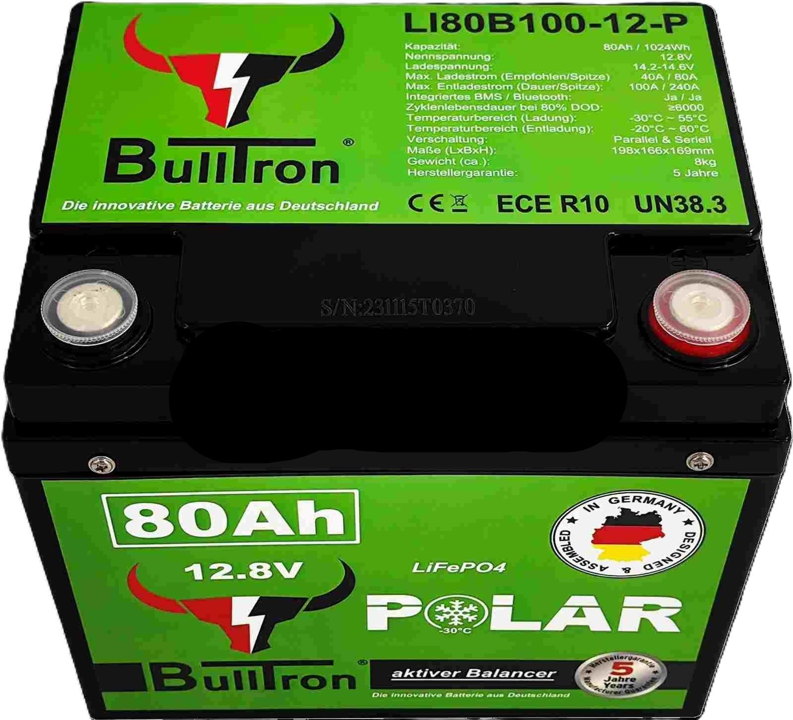 Bulltron 80Ah Polar LiFePO4 12.8V Akku mit Smart BMS, Bluetooth App und Heizung