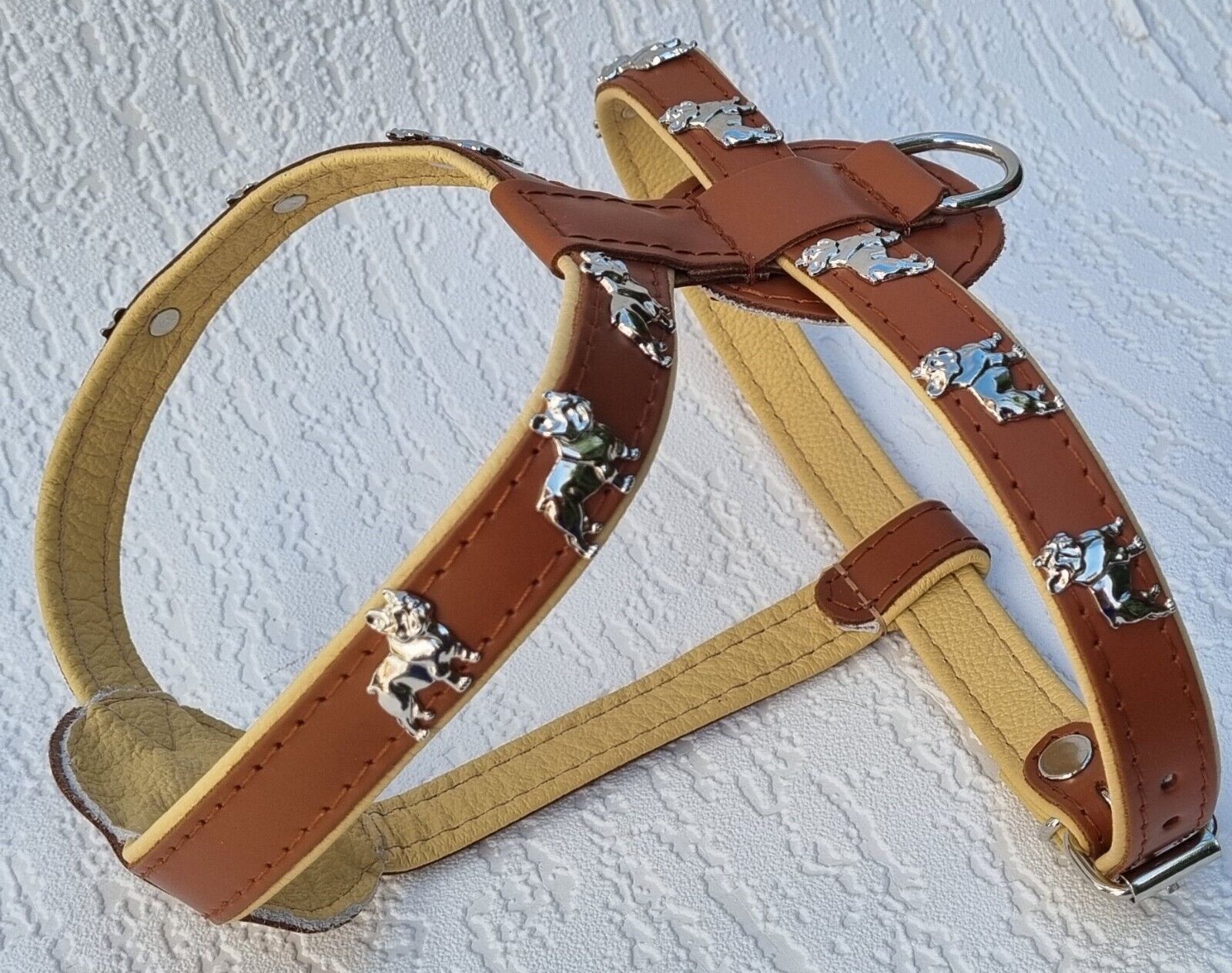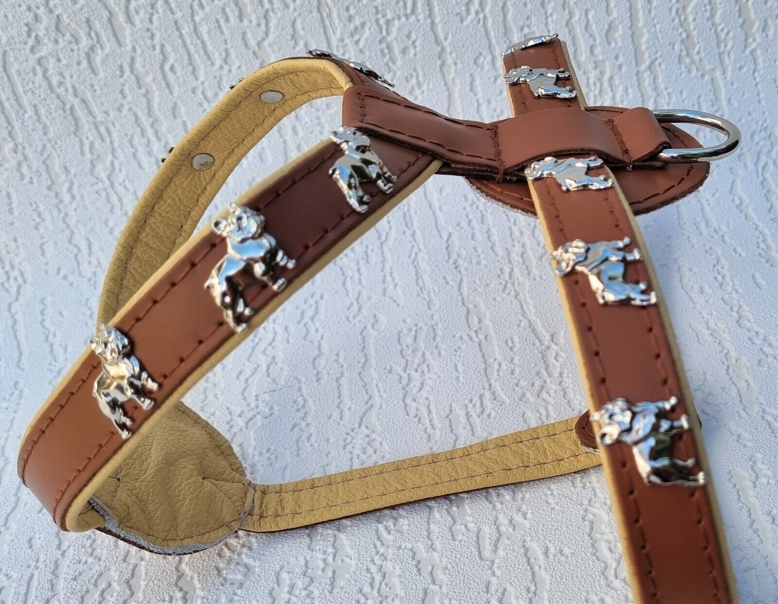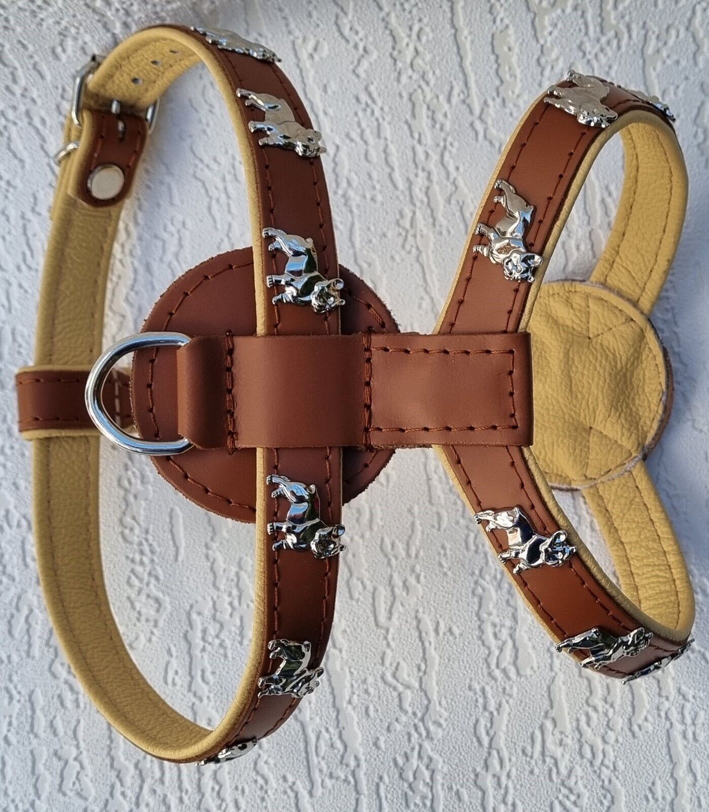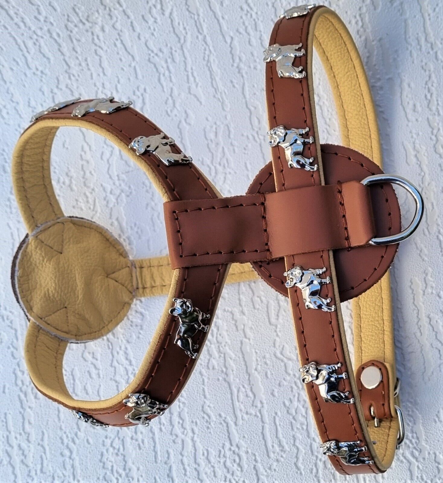 Bully Französische Bulldogge Frenchie Geschirr Brustkorb 58-67cm LEDER Cognac