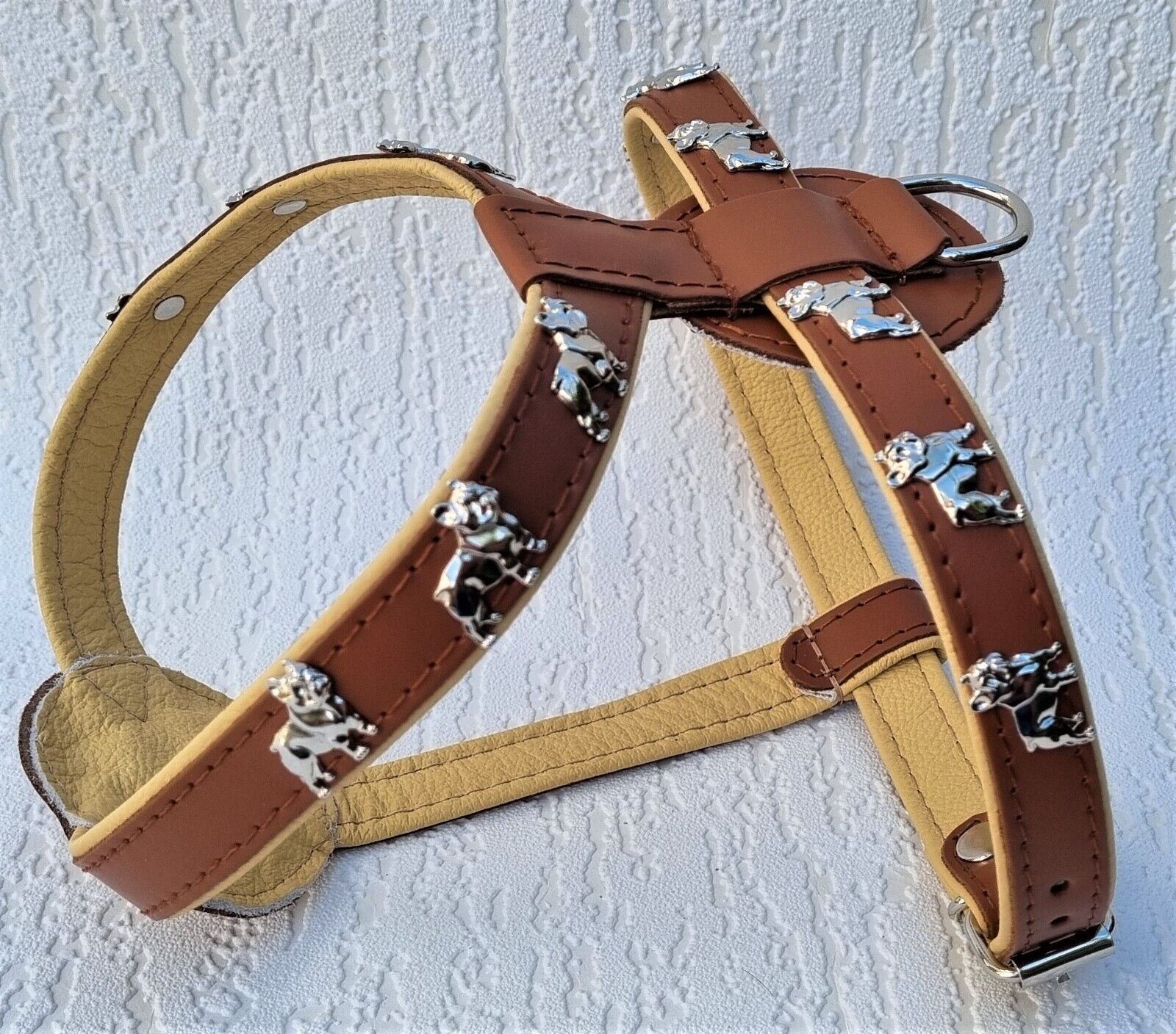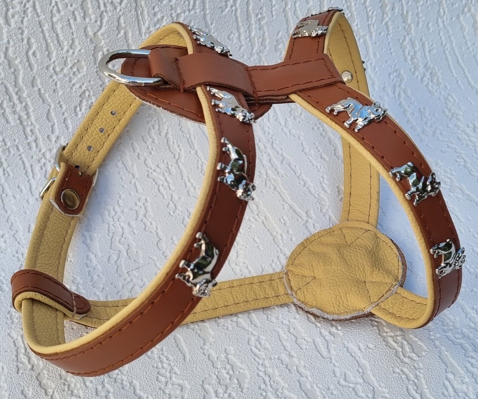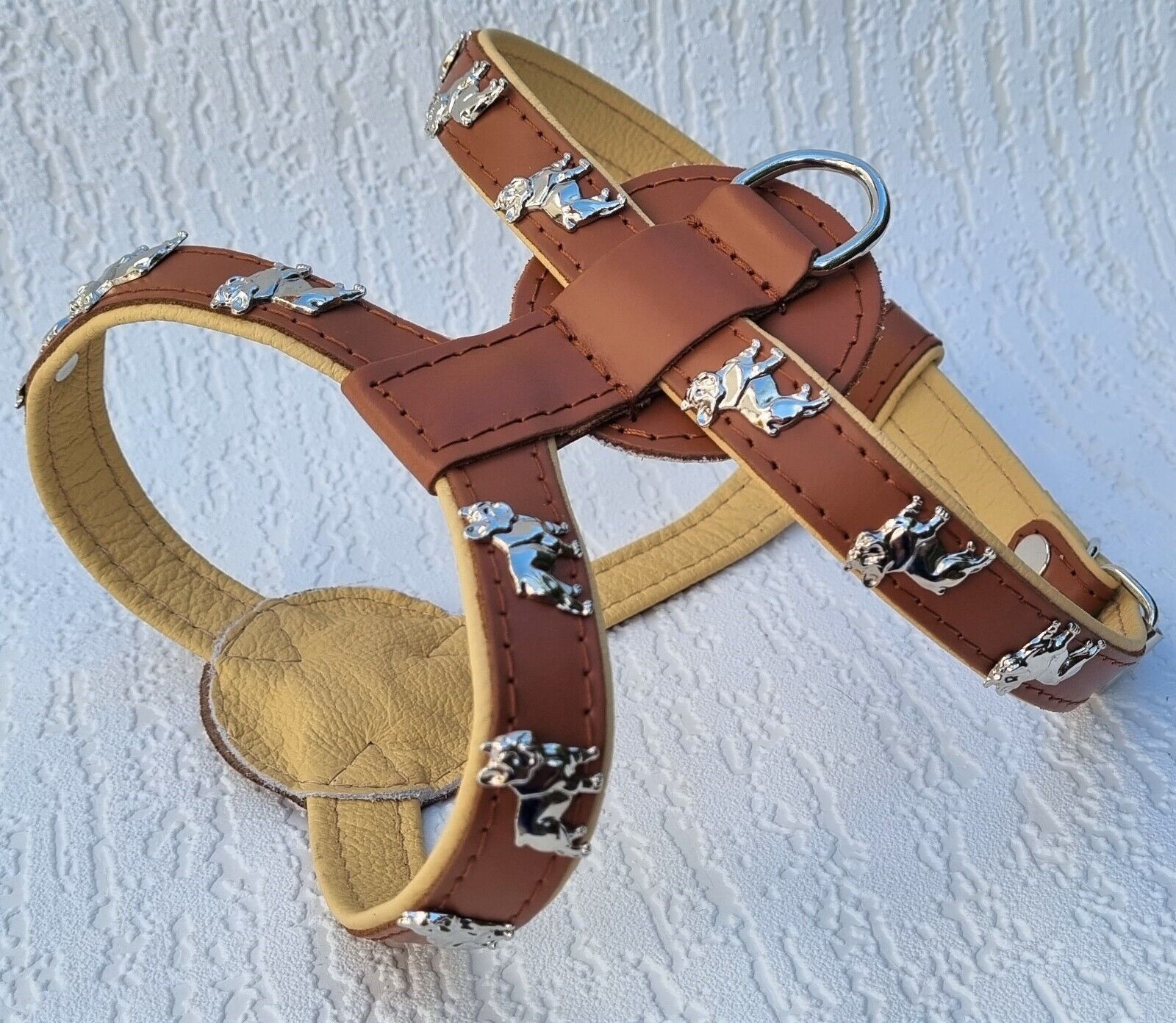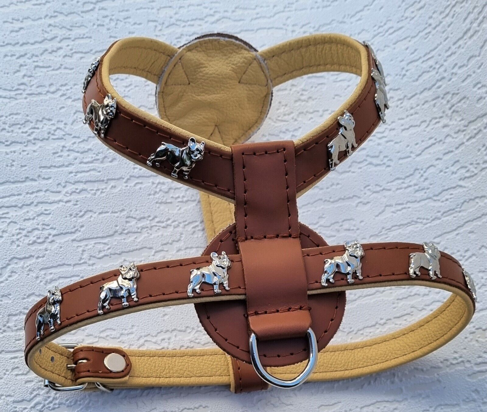 Bully Französische Bulldogge Frenchie Geschirr Brustkorb 58-67cm LEDER Cognac