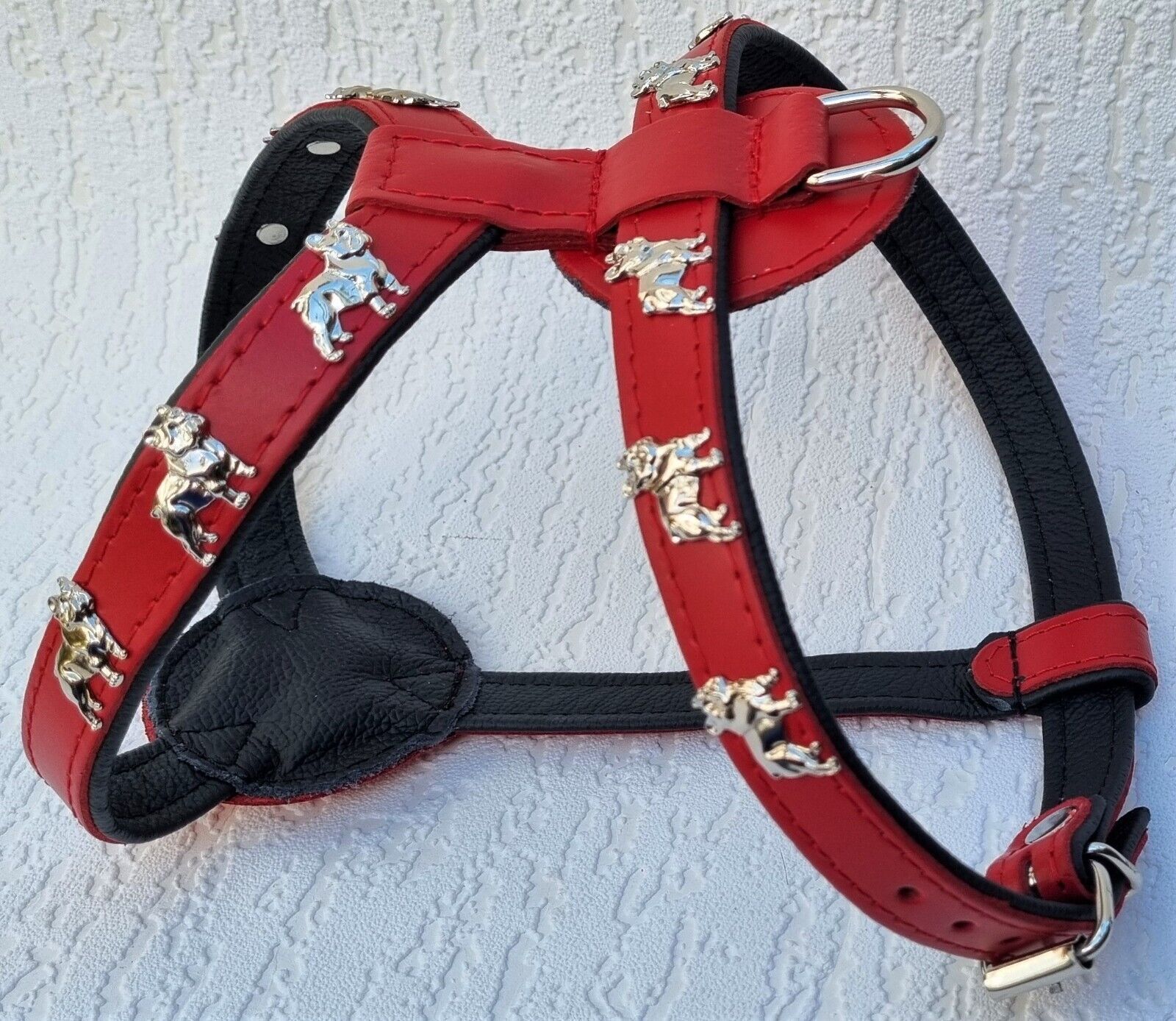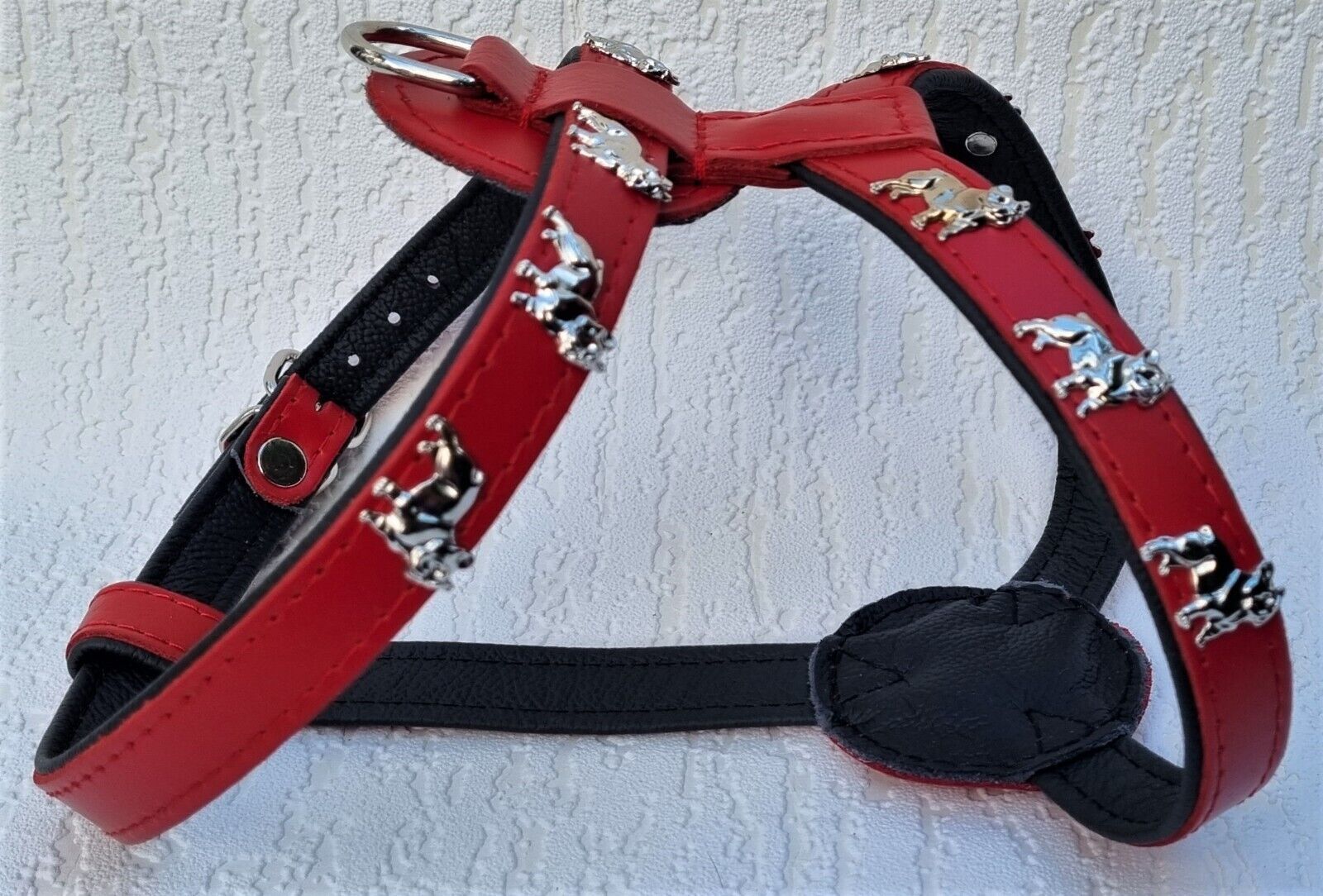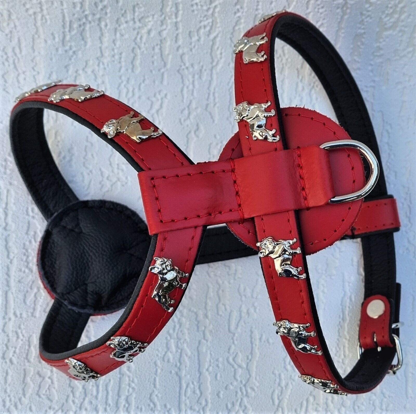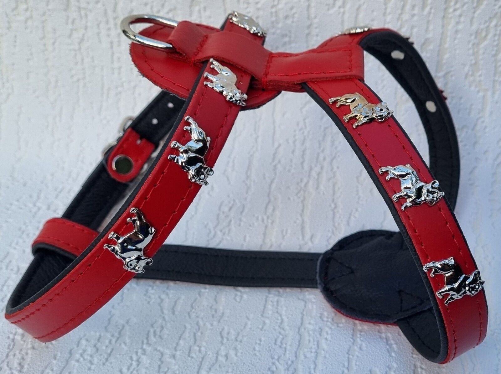 Bully Französische Bulldogge Frenchie Geschirr Brustkorb 61-68cm Echt LEDER Rot