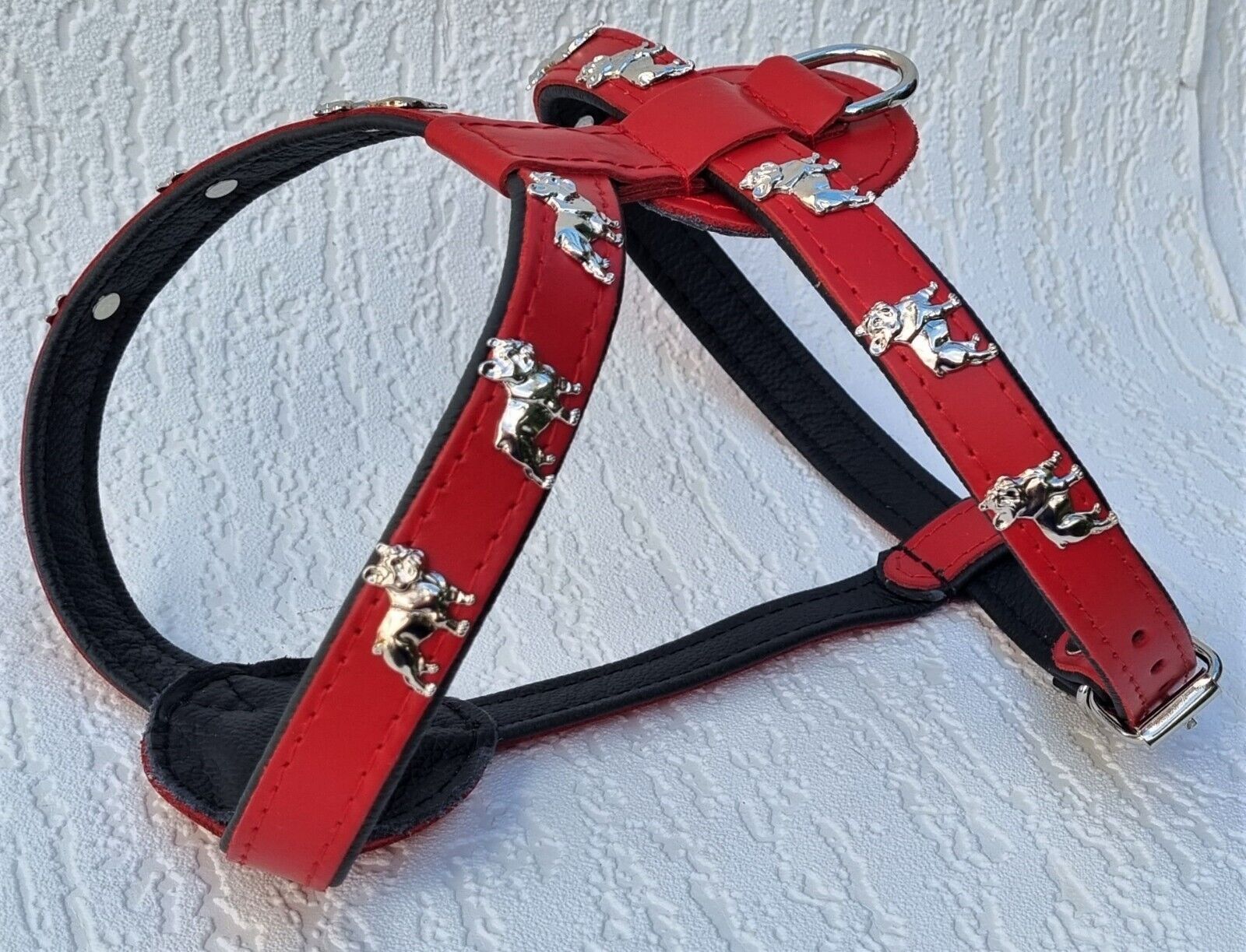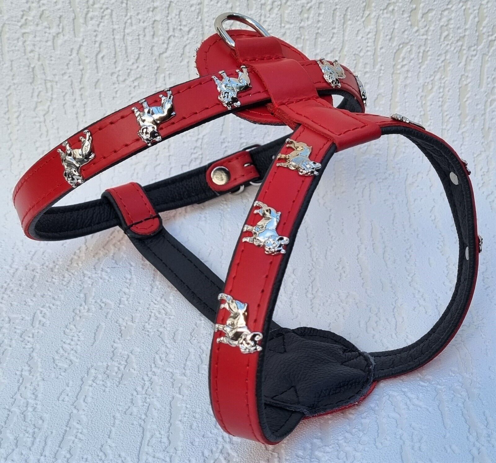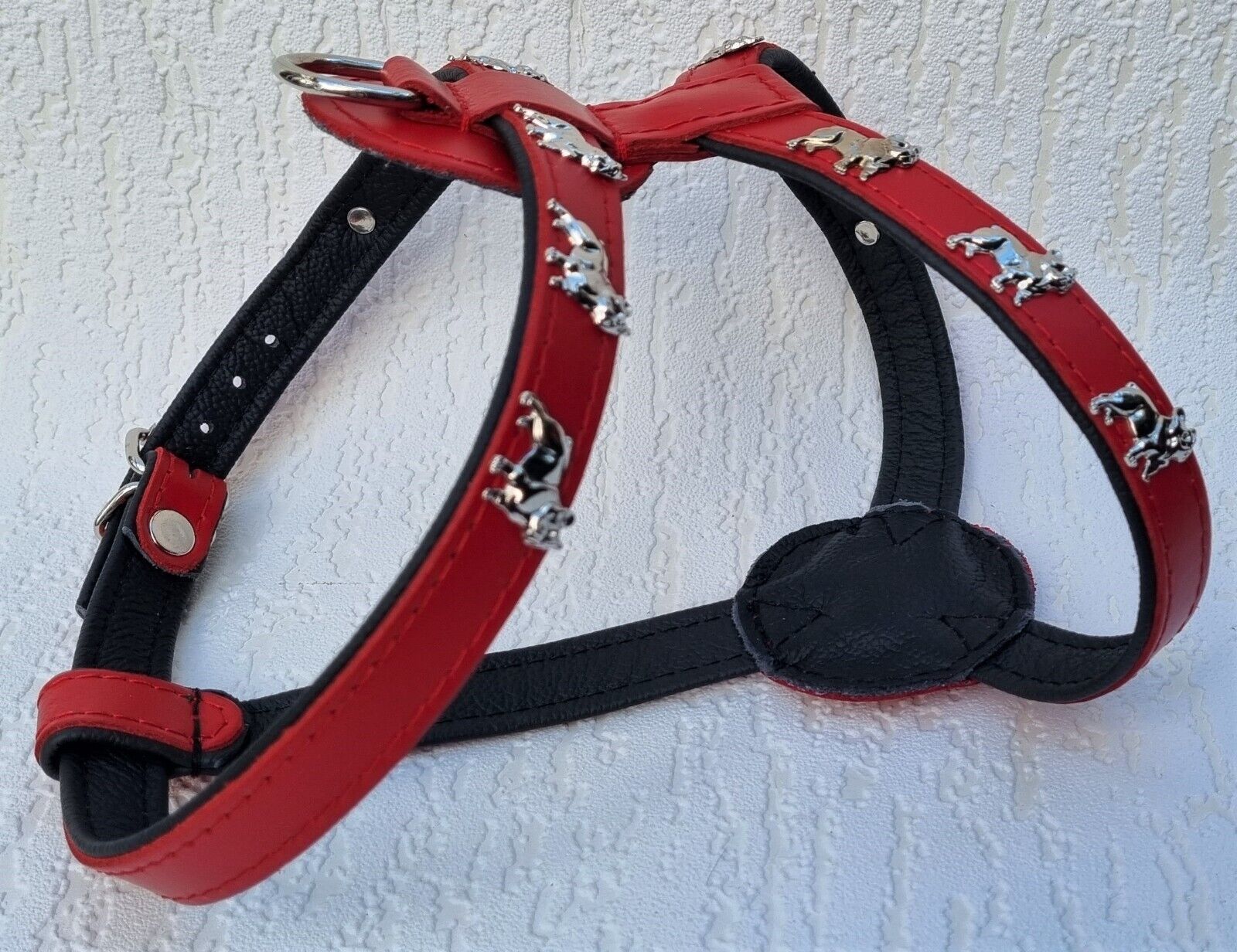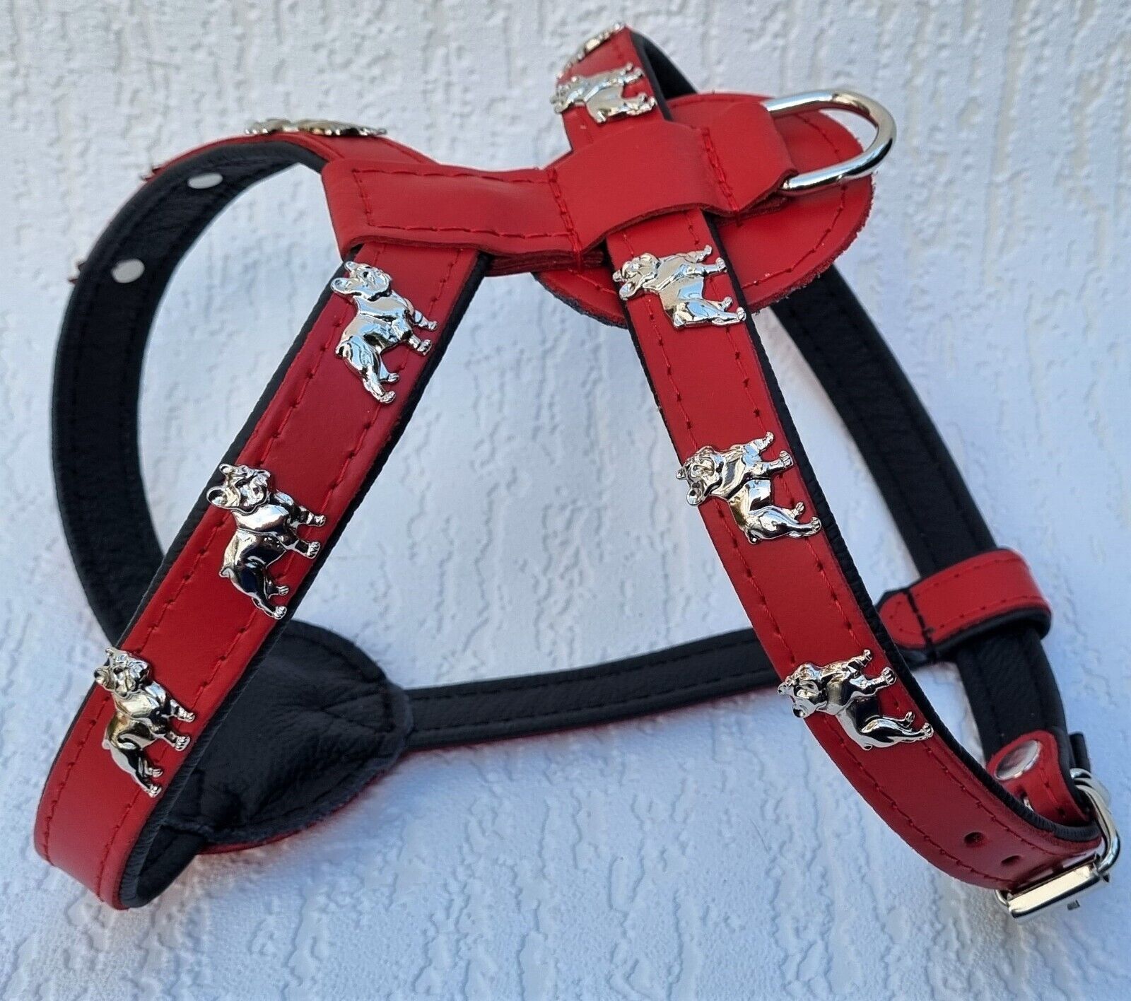 Bully Französische Bulldogge Frenchie Geschirr Brustkorb 61-68cm Echt LEDER Rot