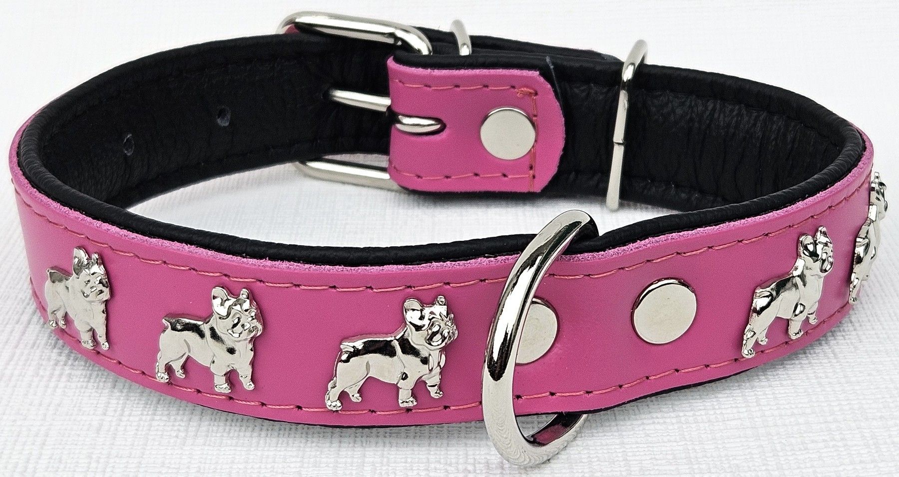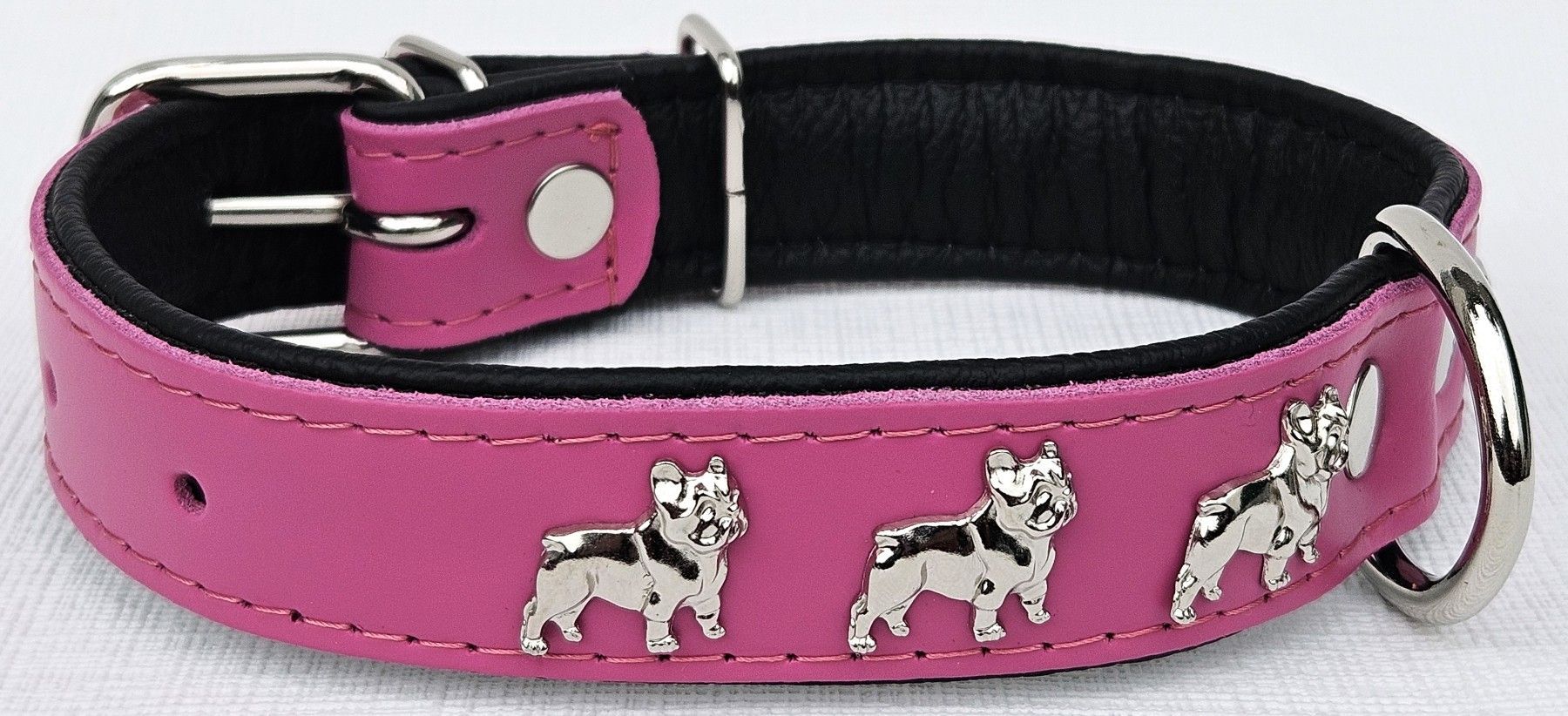 Bully Französische Bulldogge Frenchie Halsband - Halsumfang 34-45cm/30mm, LEDER Rosa