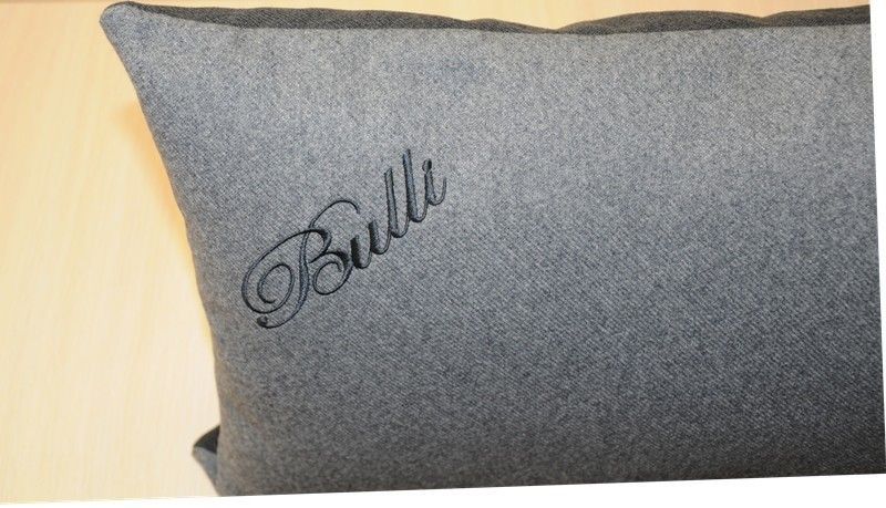 Maße: 50 x 35 x 15 cm Stoff Vorderseite Mittelgrau Caldo17 Stoff Rückseite Anthrazit Caldo19 Stickung 12 x 4 cm mit hochwertiger Vließfüllung