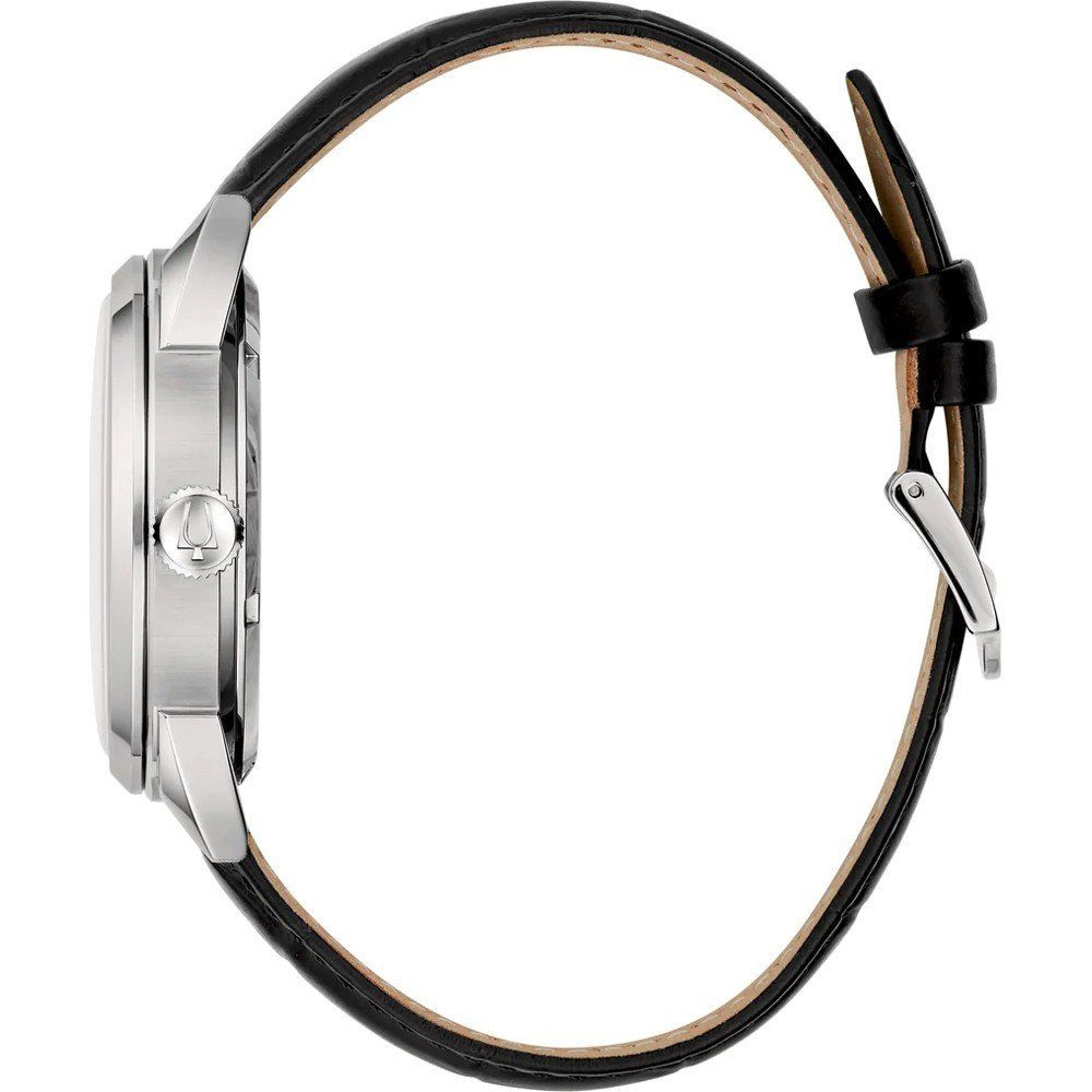 Marke: Bulova Referenz: 96B422 Geschlecht: Mann, Frau Aufzug: Automatik Zifferblattfarbe: Anthrazit Gehäusematerial: Stahl Bandmaterial: Leder Produktionsjahr: 2024 Bandfarbe: Schwarz Verschluss: Schnalle Verschluss Material: Stahl Gehäusedurchmesser: 41,5 mm Gehäusehöhe: 12,5 mm Wasserbeständigkeit