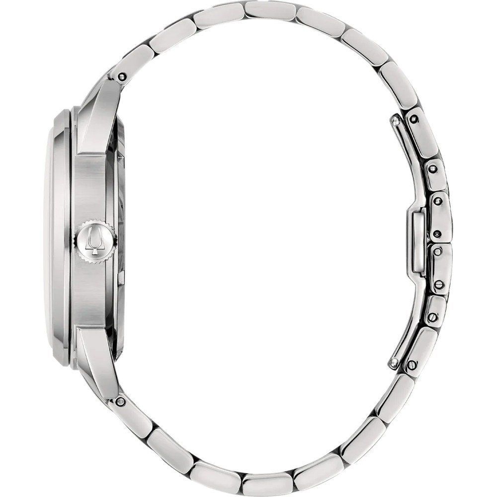 Marke: Bulova Referenz: 96B423 Geschlecht: Mann, Frau Aufzug: Automatik Zifferblattfarbe: Türkis Gehäusematerial: Stahl Armbandmaterial: Stahl Produktionsjahr: 2024 Bandfarbe: Silber Verschluss: Faltschließe mit Knöpfen Verschlussmaterial: Stahl Gehäusedurchmesser: 41,5 mm Gehäusehöhe: 12,5 mm Wasse