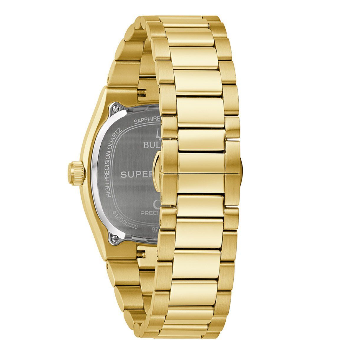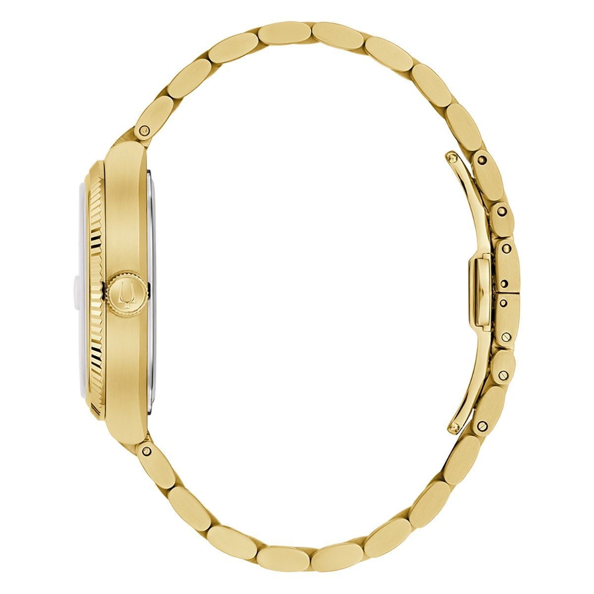 elegante Uhr für Männer, exklusives Hochleistungs-Quarzwerk Precionist mit einer Frequenz von 262 kHz für beispiellose Genauigkeit, Datumsanzeige mit Lupe, silberfarbenes Zifferblatt, goldfarbene, lumineszierende Zeiger und Stundenpunkte, mattierte Indizes, zentraler Sekundenzeiger, mattiertes Edelstahlgehäuse, gold ionen-plattiert, geschraubter Gehäuseboden, gezahnte Lünette, geriffelte Krone mit Logo, kratzfestes und entspiegeltes Saphirglas, Armband aus mattiertem, gold ionen-plattiertem Edel