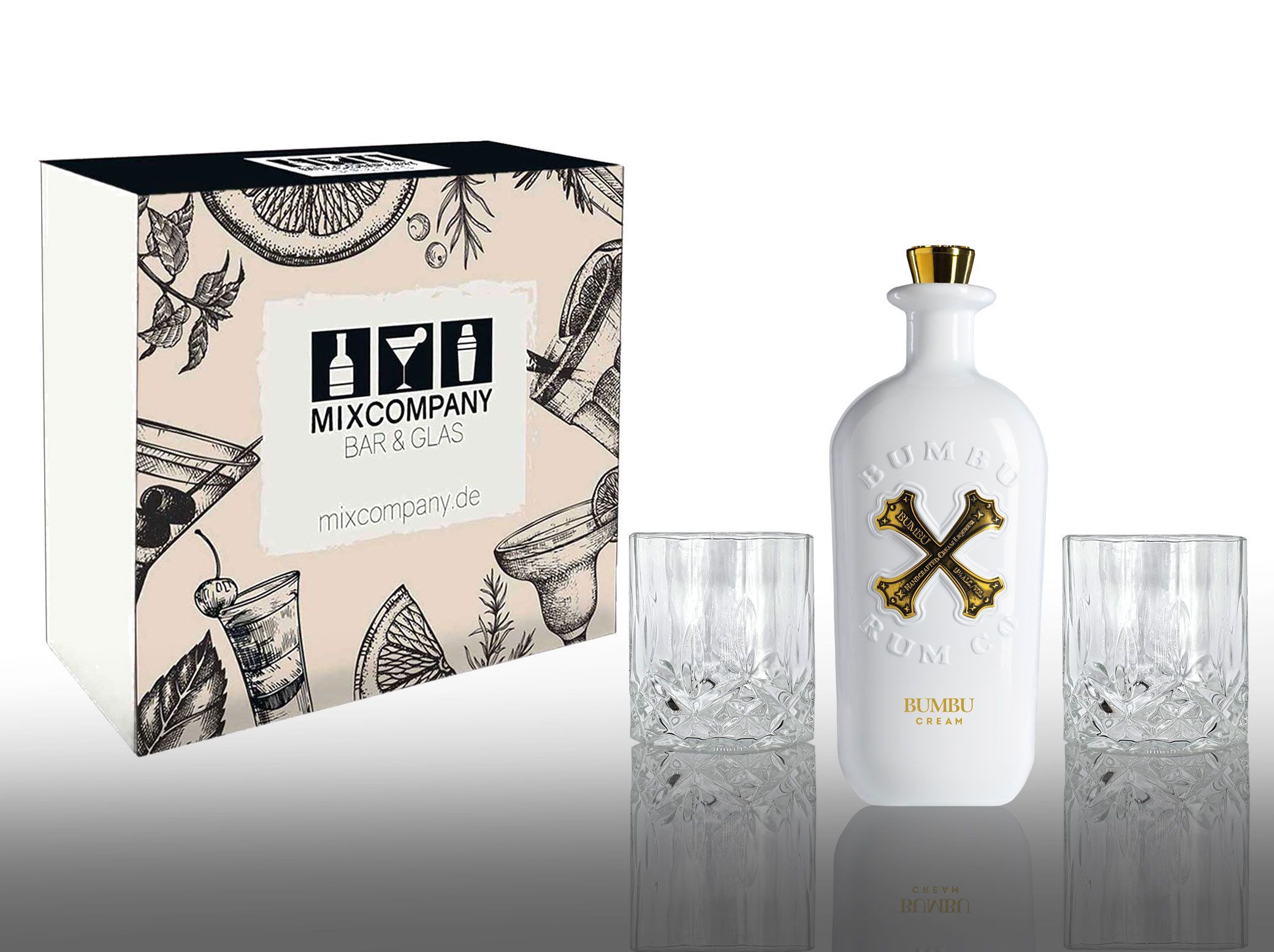 Bumbu Geschenkset Cream 0,7L (15% Vol) + 2 Tumbler Kristalloptik Creme-Likör au