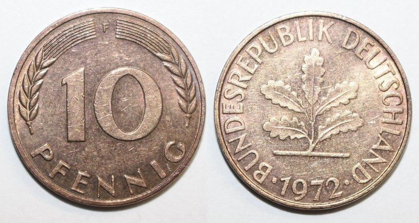 Bundesrepublik Deutschland (BRD) Münze 10 Pfennig - F von 1972 Da es sich um einen Privatverkauf handelt, sind Garantie, Gewährleistung oder Rücknahme ausgeschlossen
