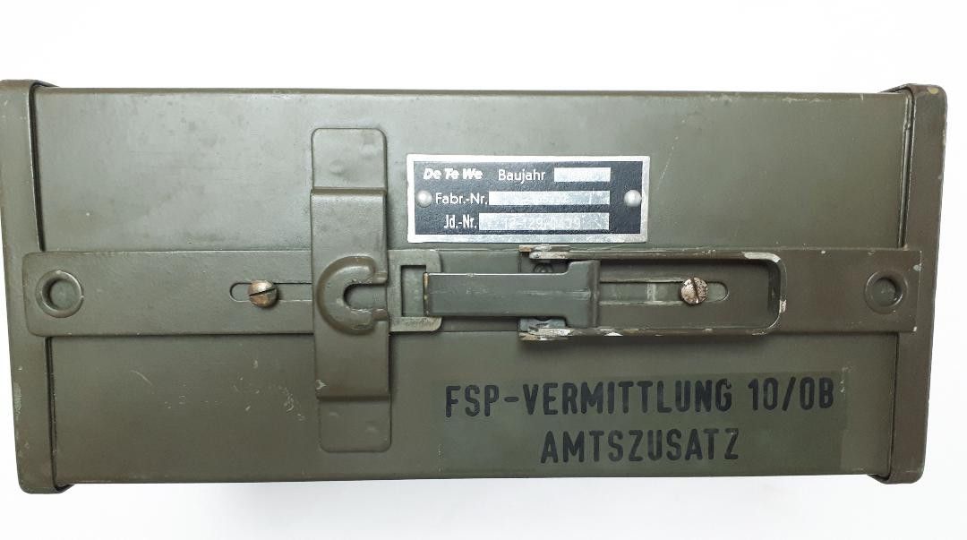 Bundeswehr FSP Vermittlung 10/OB Amtszusatz * Das Gerät wurde NICHT auf Funktionalität geprüft! * Farbe: oliv * Gewicht: ca. 6 kg Zustand: gut - gebraucht mit etlichen Gebrauchsspuren (z.B. kleinere Beschädigungen, Abrieb )
