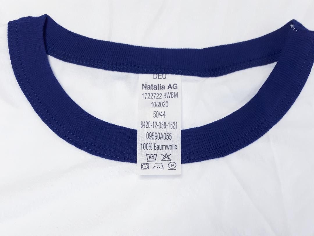 Bundeswehr Marine T Shirt K 97 * Farbe: weiß - blauer Kragen * Größe: 50/44 - Brustumfang ca. 102 cm * Material: 100 % Baumwolle * waschbar bei 60 Grad * Vers.Nr. 8420-12-358-1621 Zustand: neu - unbenutzte Lagerware (Lagerspuren können vorkommen) Abbildung ist beispielhaft, Abweichungen kommen vor!