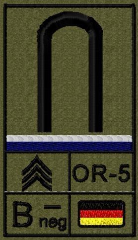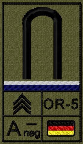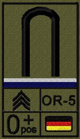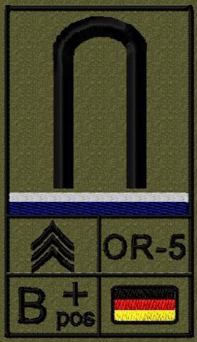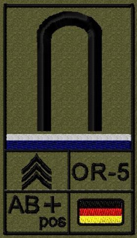 Dienstgradabzeichen auf Klett mit NATO-Rangcode, dem US Army-Dienstgrad, der Deutschlandflagge und der Blutgruppe mit Rhesusfaktor aufgestickt. Passt ideal auf das BW Unterhemd mit Klett auf der Brust oder auch auf dem Smock. Der Patch hat die Maße: B: 5,2cm x L: 9,3cm. Achtung: Bei der Auswahl der