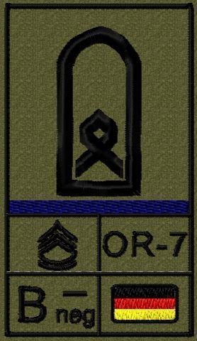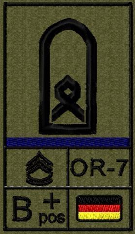 Bundeswehr Rangabzeichen Klett, Dunkelblauer Litze, Blutgruppe, Hauptfeldwebel OR-7