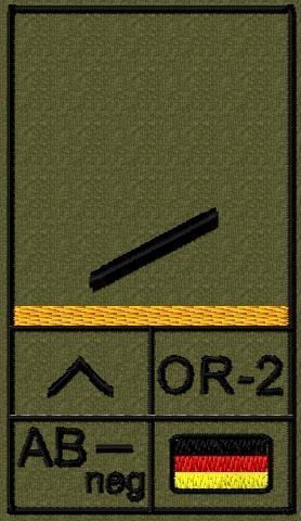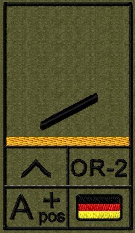 Bundeswehr Rangabzeichen Klett, Goldgelber Litze, Blutgruppe, Gefreiter