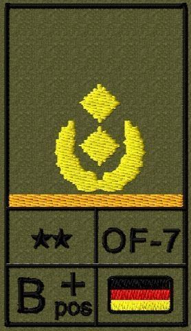 Bundeswehr Rangabzeichen Klett, Goldgelber Litze, Blutgruppe, Generalmajor