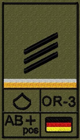 Bundeswehr Rangabzeichen Klett, Goldgelber Litze, Blutgruppe, Hauptgefreiter OA