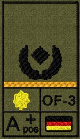 Bundeswehr Rangabzeichen Klett, Goldgelber Litze, Blutgruppe, Major