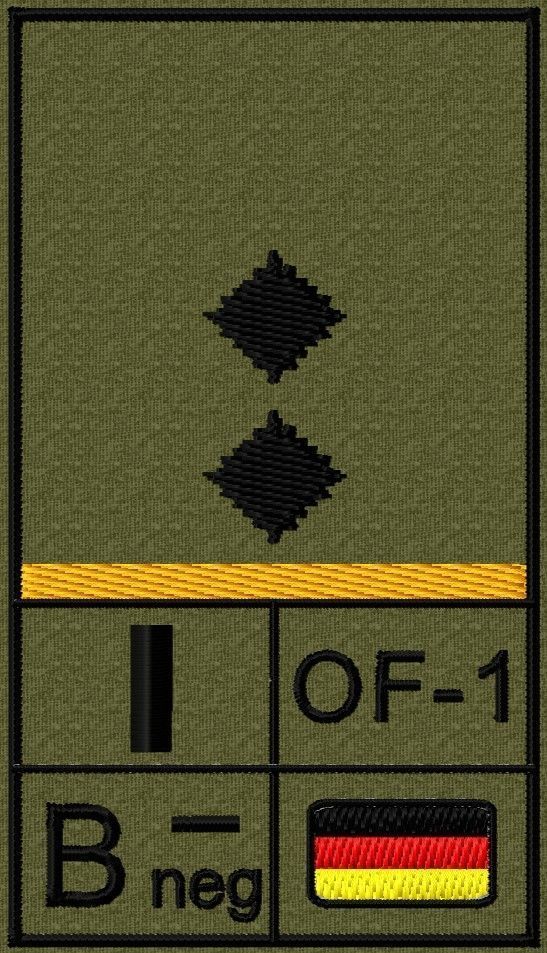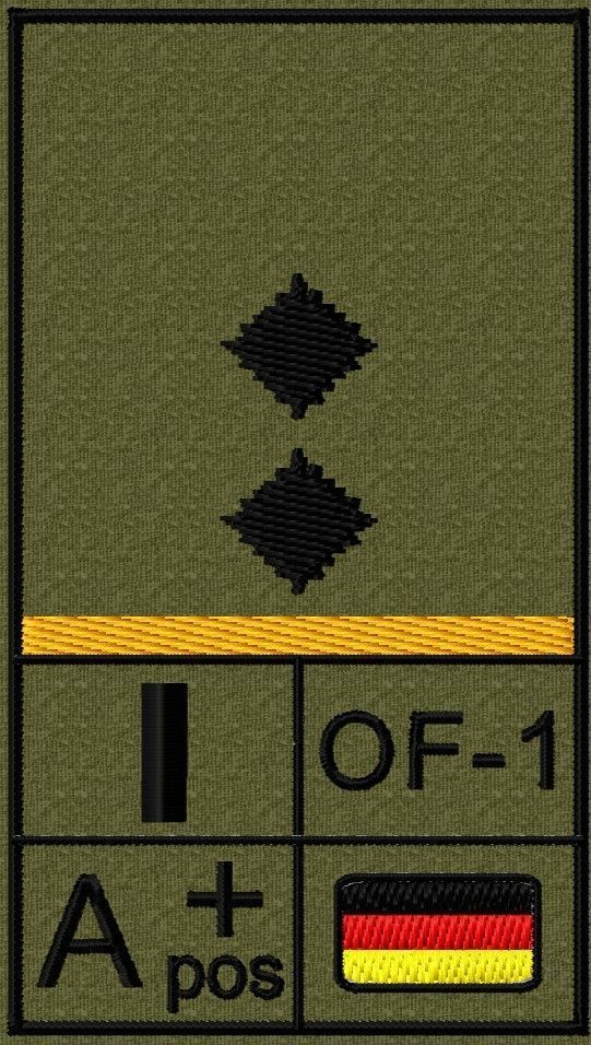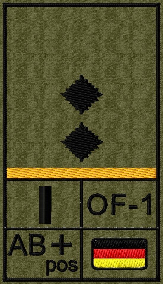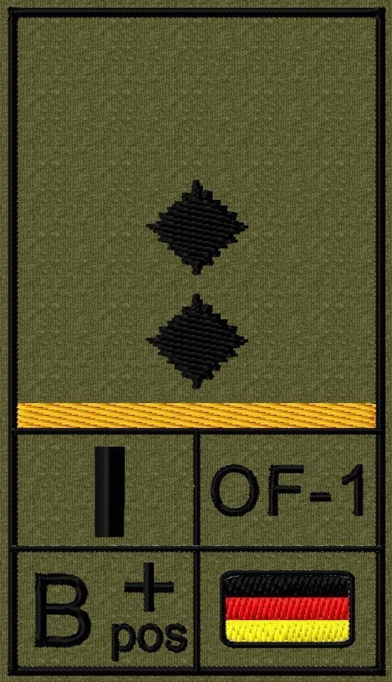 Bundeswehr Rangabzeichen Klett, Goldgelber Litze, Blutgruppe, Oberleutnant