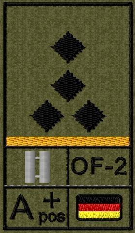Bundeswehr Rangabzeichen Klett, Goldgelber Litze, Blutgruppe, Stabshauptmann