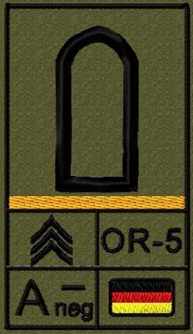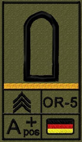 Bundeswehr Rangabzeichen Klett, Goldgelber Litze, Blutgruppe, Stabsunteroffizier