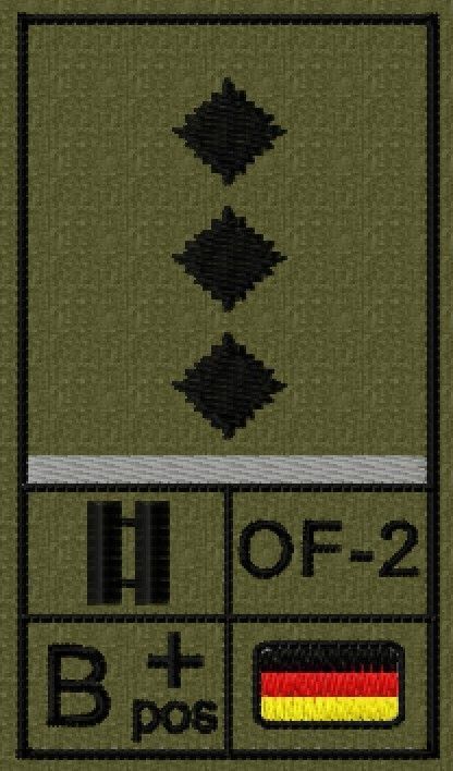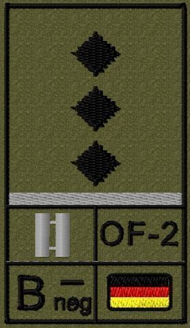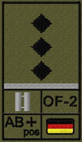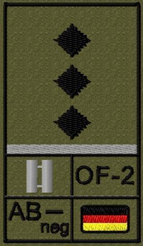 Bundeswehr Rangabzeichen Klett, Graue Litze, Blutgruppe, Hauptmann